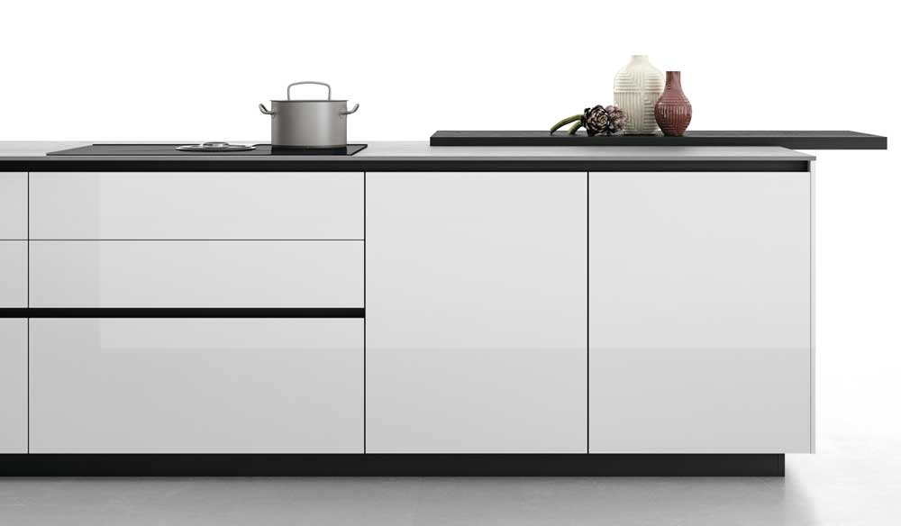 Le cucine con ante in vetro sono luminose e raffinate, resistenti e durature. Grazie a tali pregevoli caratteristiche, questo materiale è proposto per rivestire i telai in alluminio dell’anta Aspen e così creare cucine componibili con ante in vetro, fra tecnica e design.