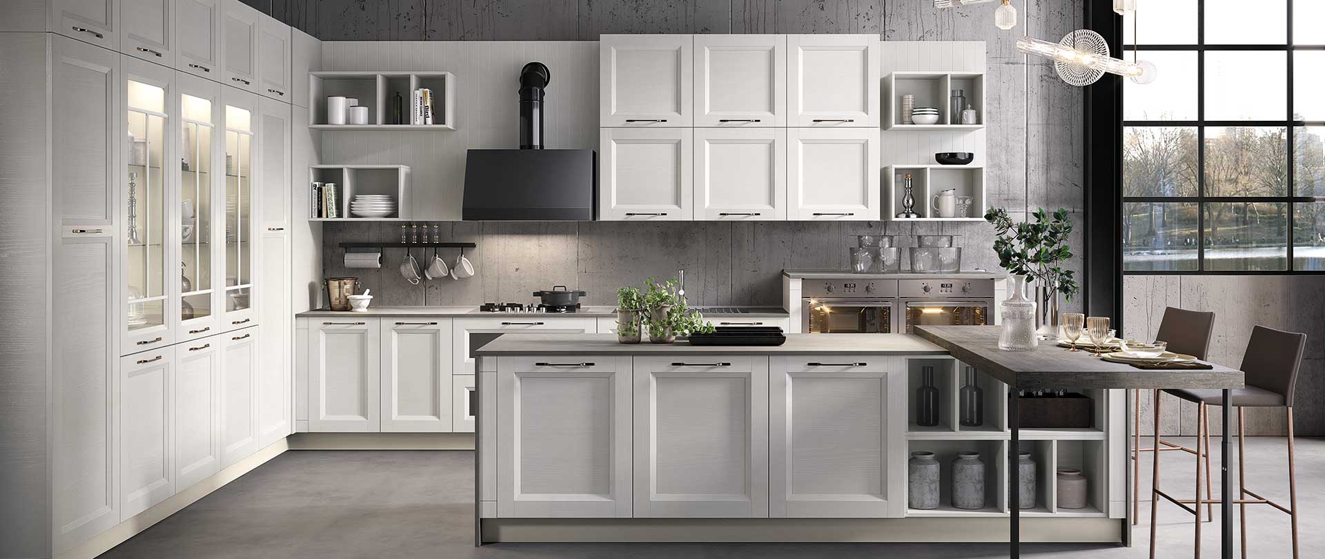 Gea, una creazione di Evo Cucine dal gusto intramontabile. Il virtuoso compromesso tra tradizione e innovazione. In Gea, l’integrazione tra stili diversi genera la ricchezza degli ambienti cucina.
