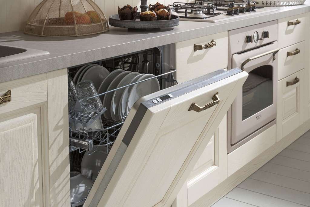 La cucina Telma può essere attrezzata con frigo congelatore, piano cottura a 5 fuochi, forno multifunzione inox, lavastoviglie, forno a microonde, cappa aspirante integrata. Disponibile nella composizione lineare, angolare, a penisola.