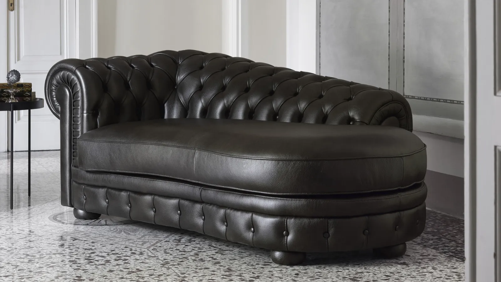 Divano classico capitonné in pelle