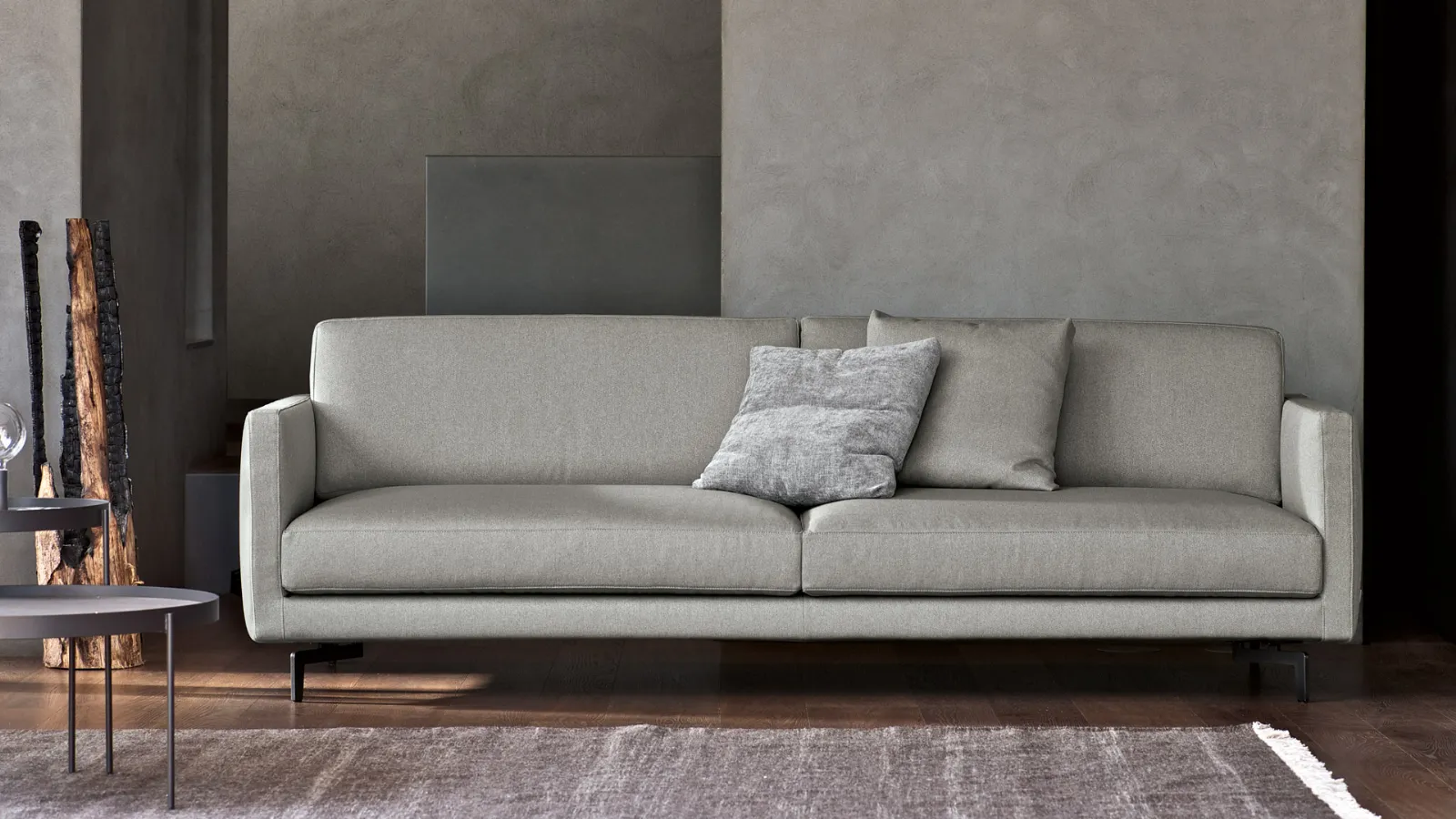 La base leggermente sollevata da terra fluttua con eleganza mentre le sedute profonde invitano a lasciarsi andare al relax. Il divano Bart può essere rivestito in tessuto o in pelle, microfibra o ecopelle. Tutti i cuscini sono removibili e sfoderabili.
