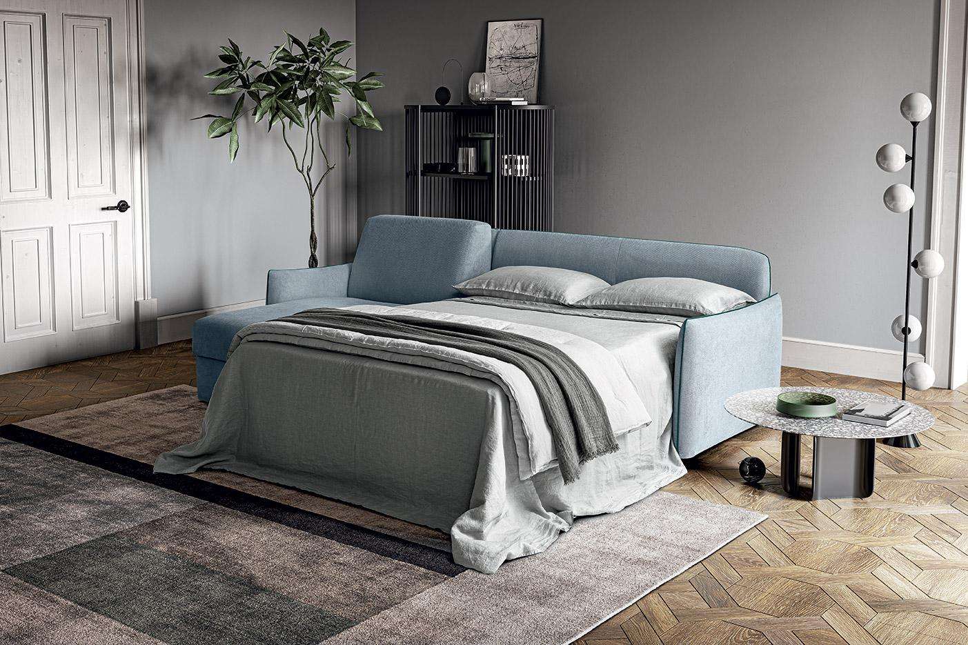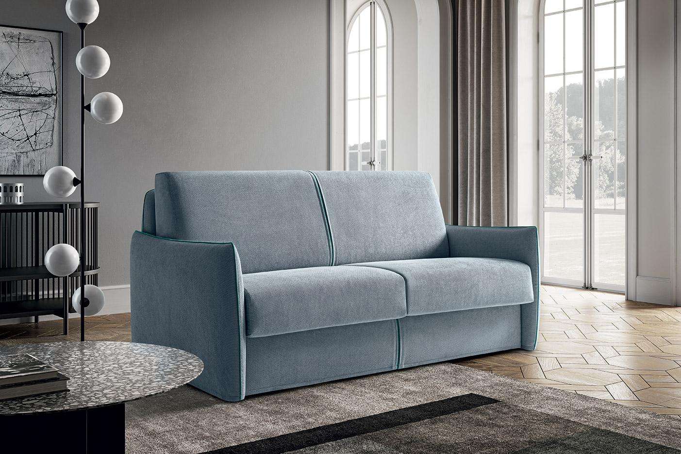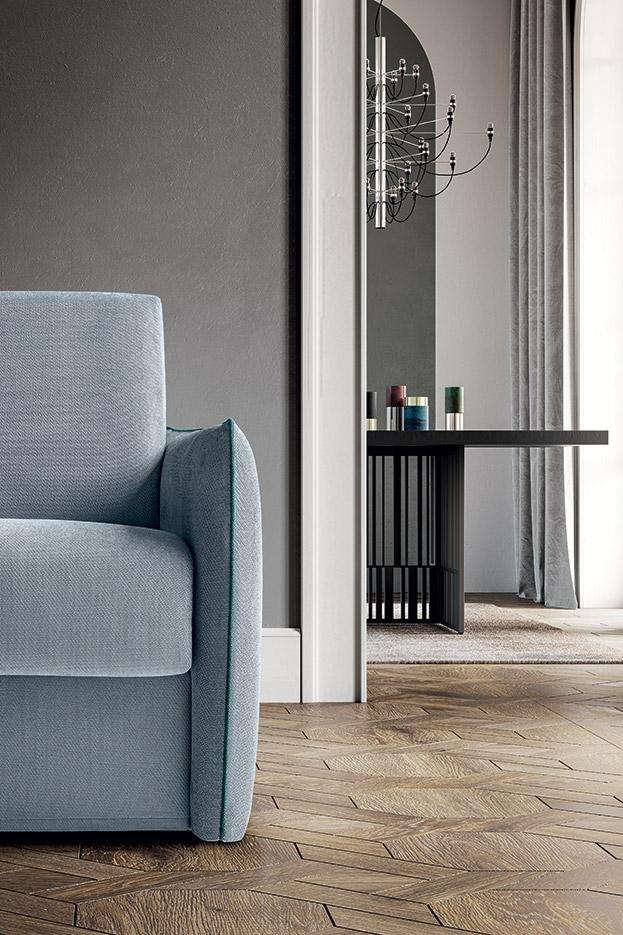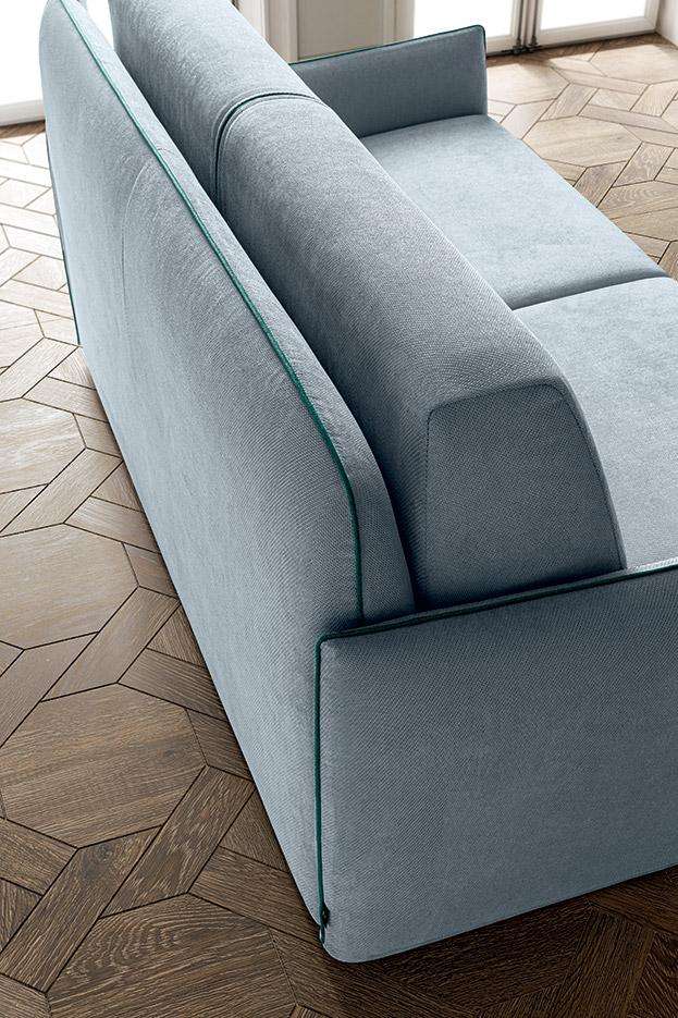 Amadeus è il divano letto componibile, elegantemente minimal. Bordini a vista, in tinta o in contrasto. Schienale con porta guanciali interno, braccioli ridotti e comode cuscinature. Amadeus combina in ogni dettaglio estetica e funzionalità
