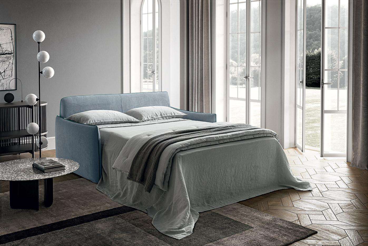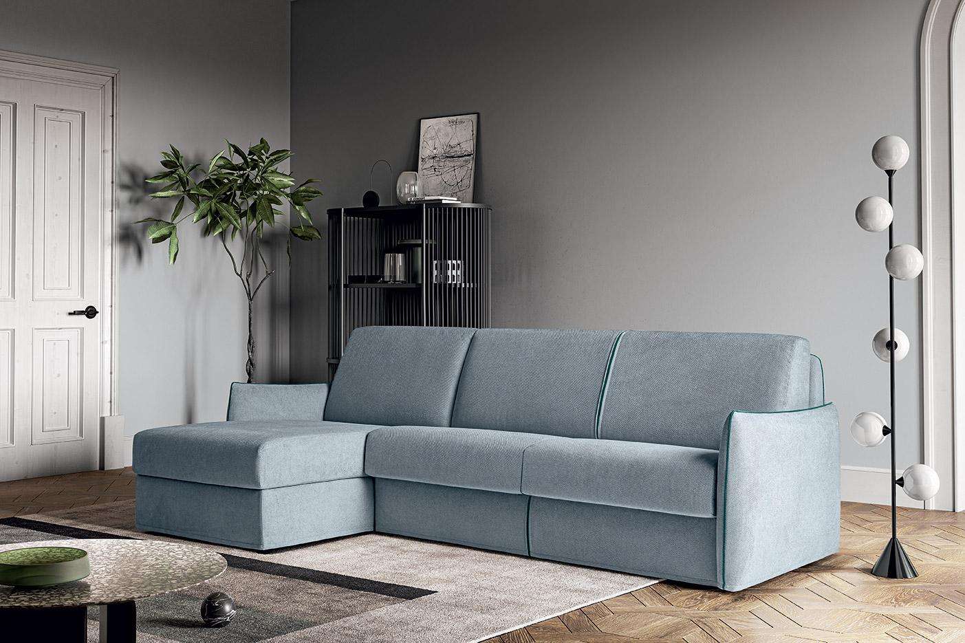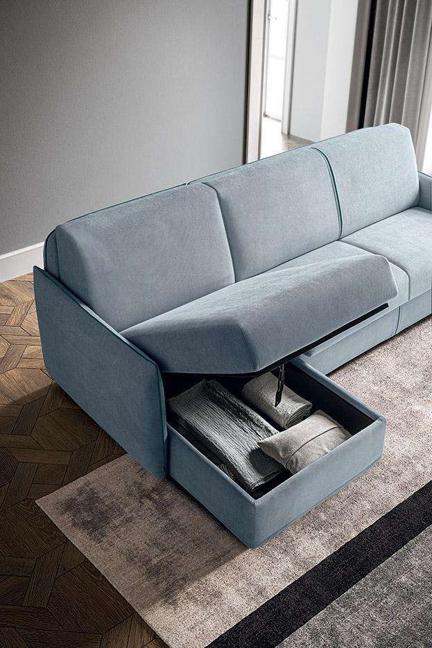 Amadeus è il divano letto componibile, elegantemente minimal. Bordini a vista, in tinta o in contrasto. Schienale con porta guanciali interno, braccioli ridotti e comode cuscinature. Amadeus combina in ogni dettaglio estetica e funzionalità