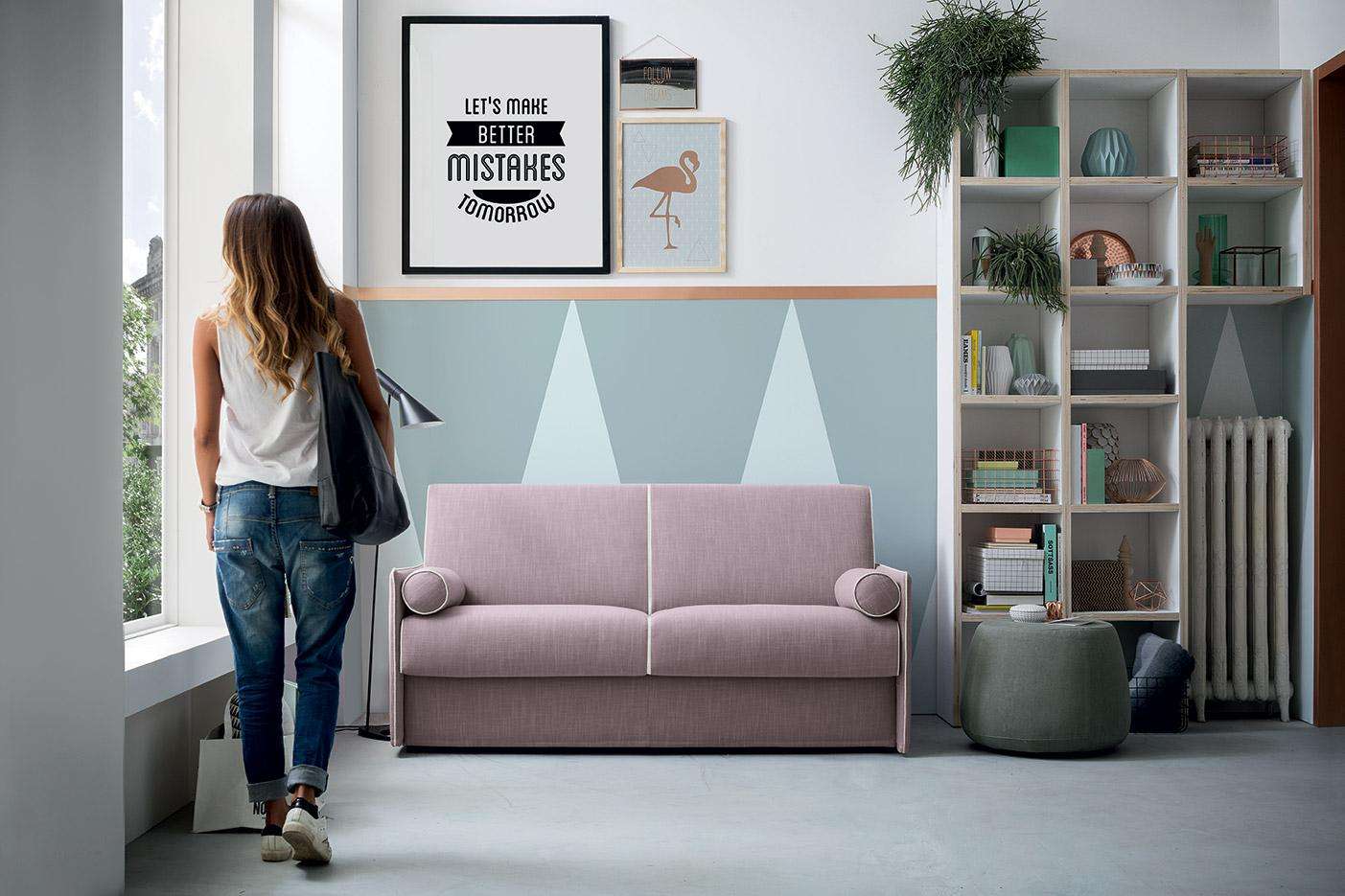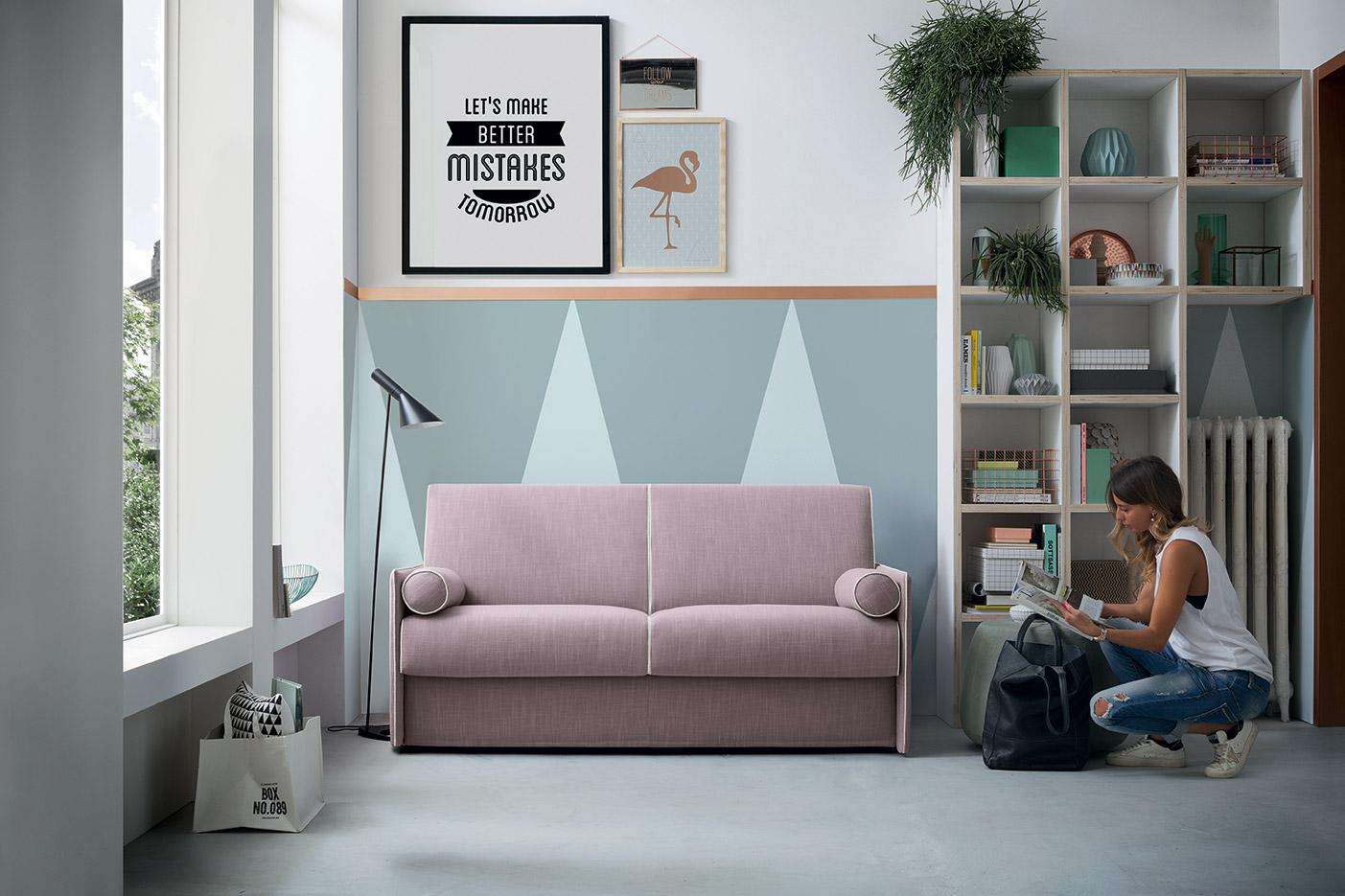 Le linee minimali di Blair, sdrammatizzate dai cuscini tondeggianti, sono ideali per gli spazi contenuti che non rinunciano ad un tocco di originalità