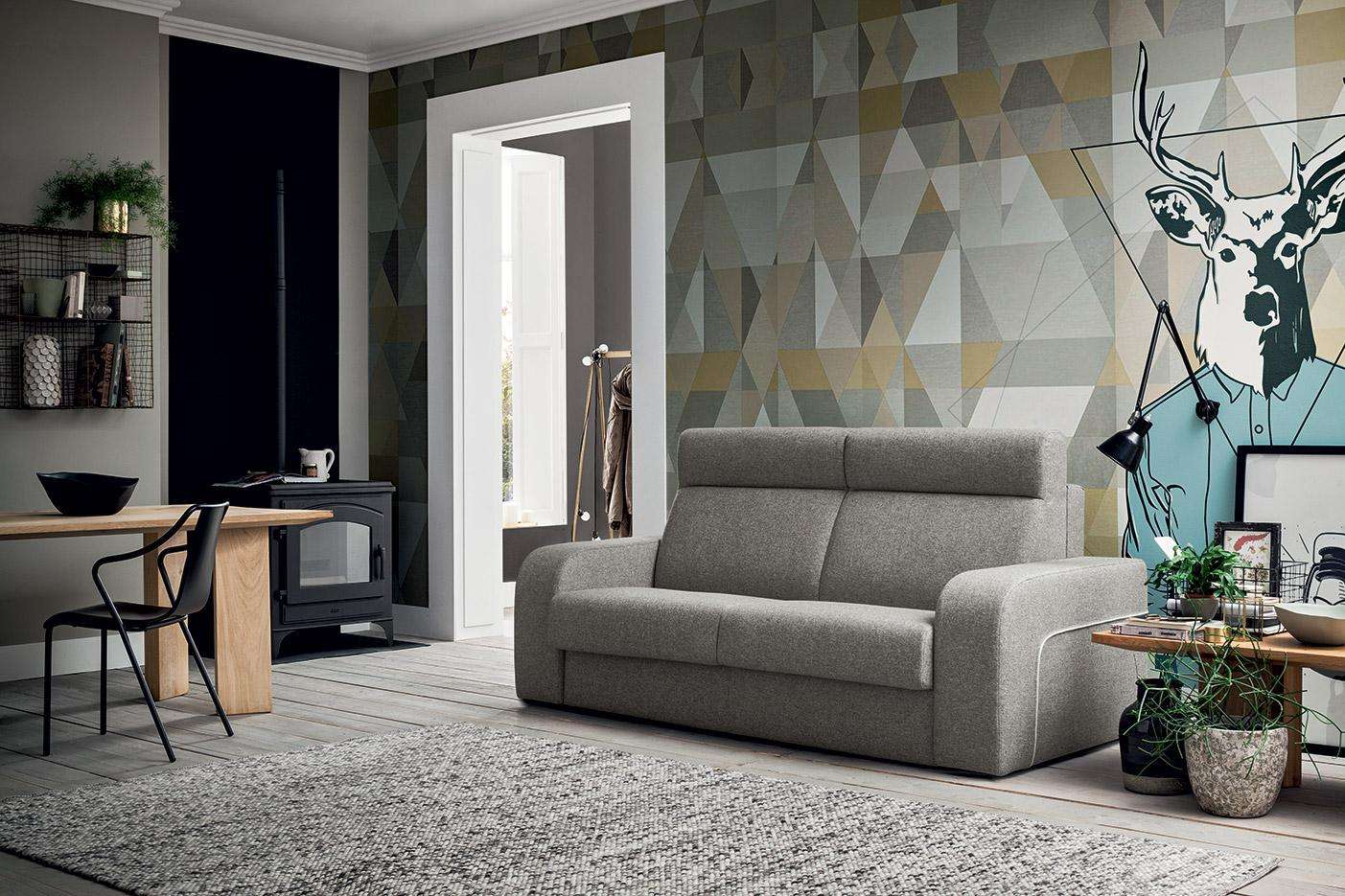 Quando di notte l’ambiente diventa camera da letto, Didier è il centro della trasformazione. La morbida testiera trapuntata è il coronamento perfetto per delle lunghe dormite.