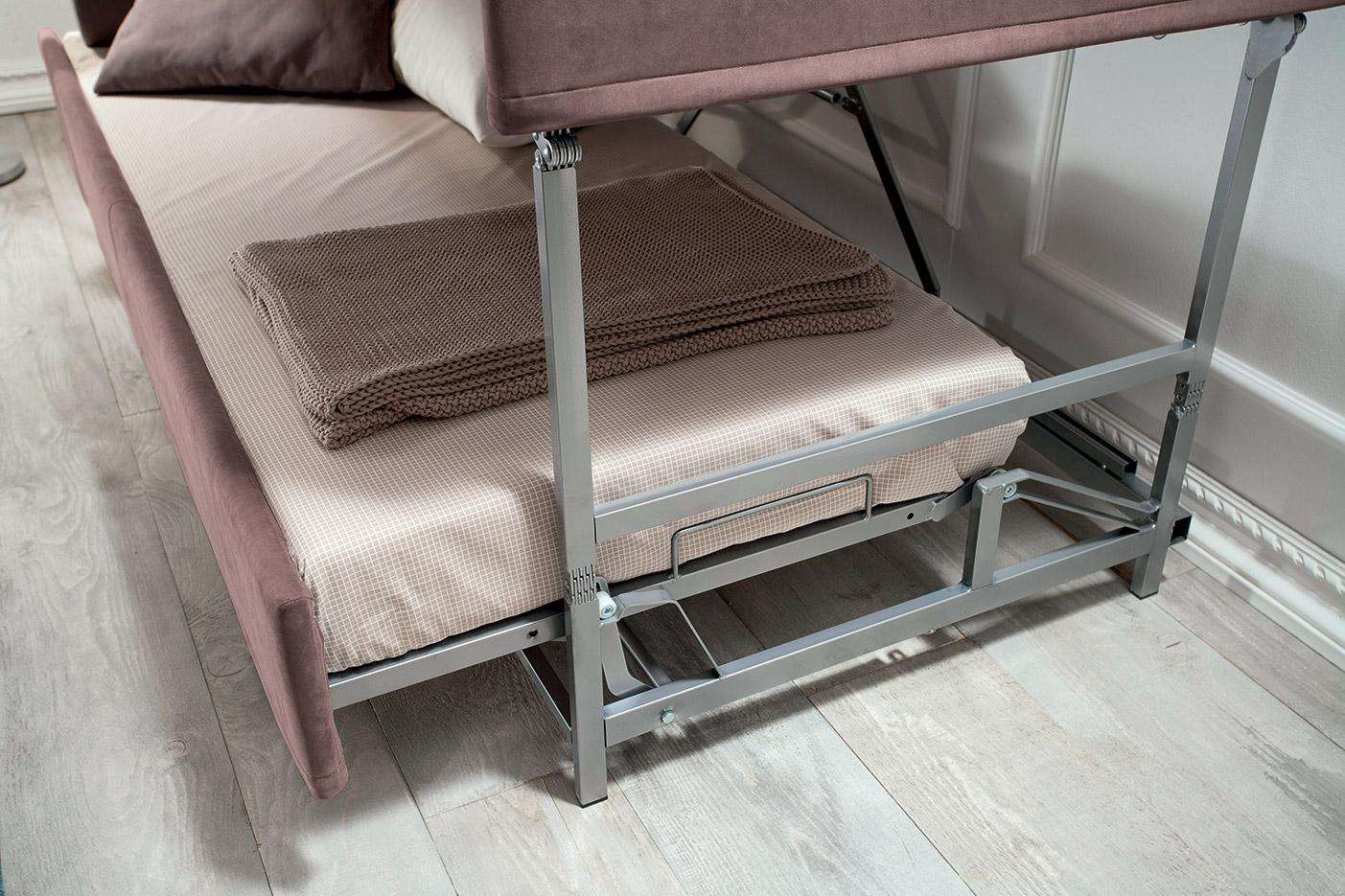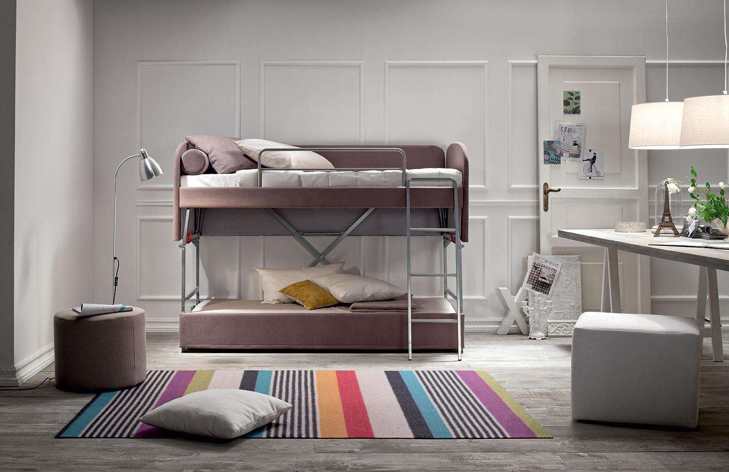 Linee classiche, sdrammatizzate dai cuscini tondi. Ellen porta con sé un letto in più, ma senza nessun ingombro grazie al meccanismo a castello