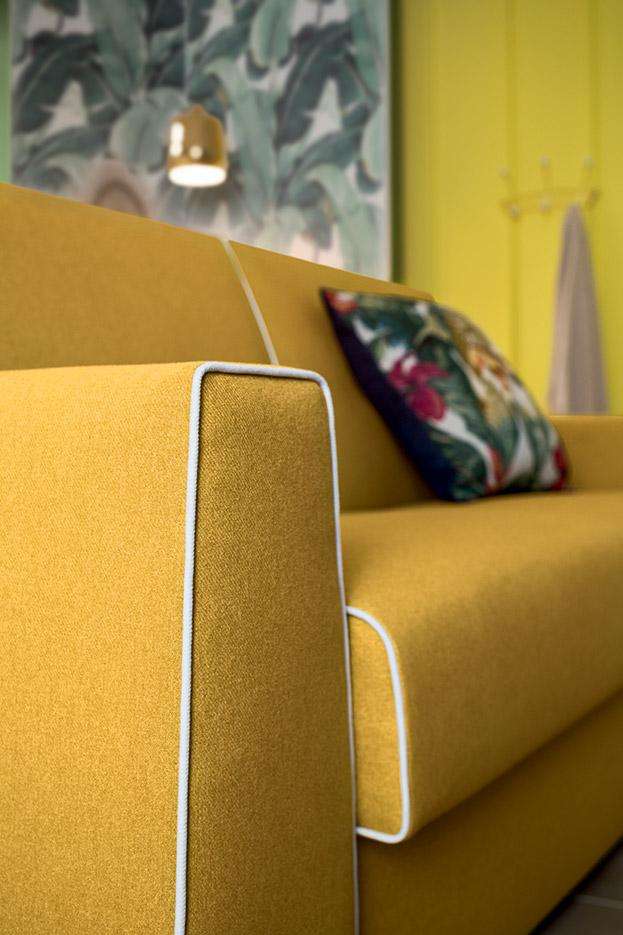 Le affascinanti forme dal gusto futuristico.Con la sua personalità tenace ha conquistato tutti. Il caratteristico cordoncino è un tocco di stile che rifinisce in contrasto le linee di questo divano letto, evidenziandone il design unico.