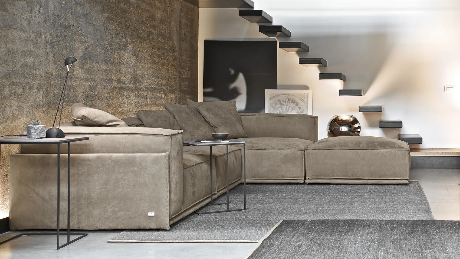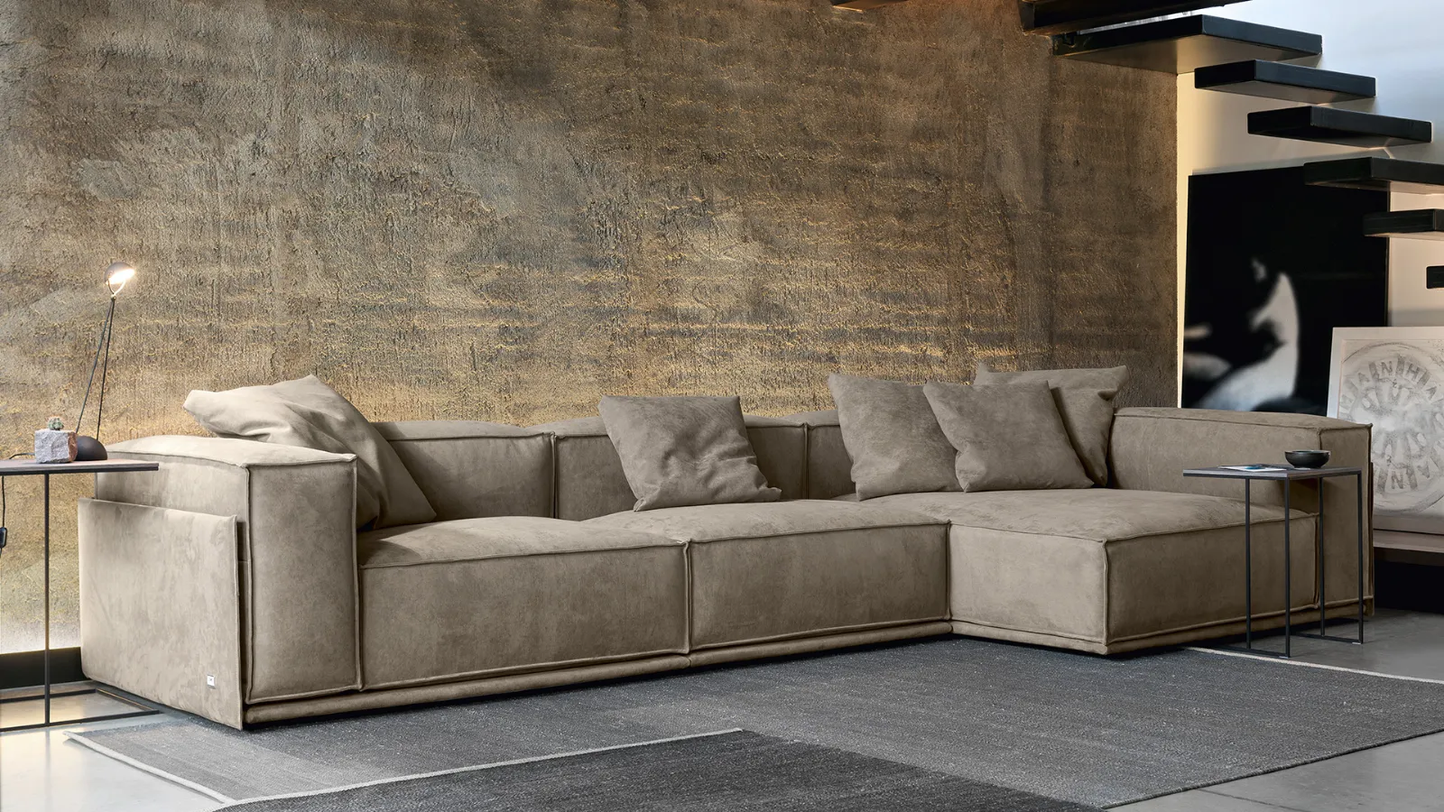 Lo stile informale sottolineato da una struttura austera e squadrata, abbinato al rivestimento in tessuto o vera pelle, lavorata con abilità sartoriale, fanno di questo divano l’arredamento ideale per appartamenti o loft moderni e alla moda. Perfetto nei progetti di interior più attenti, dove la matericità degli elementi consente di esaltarne le forme.
