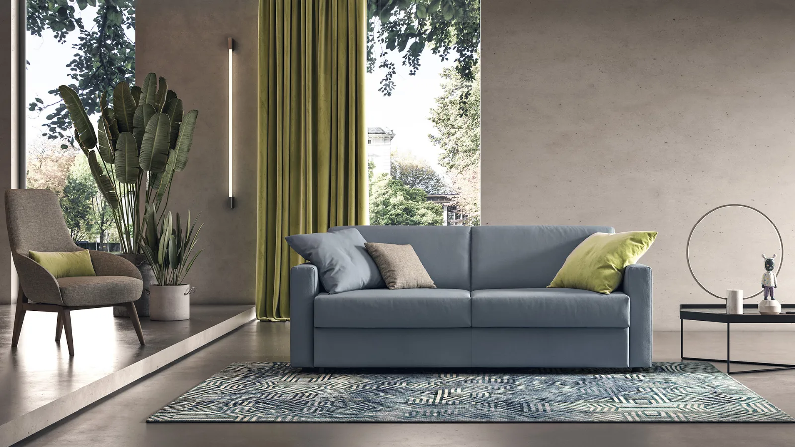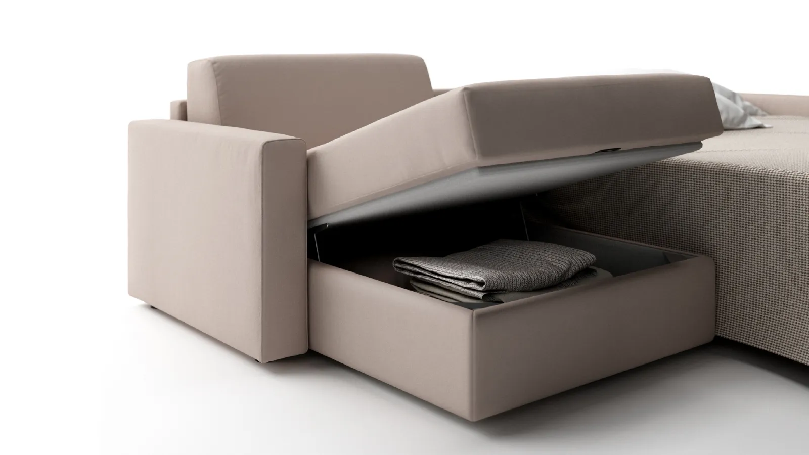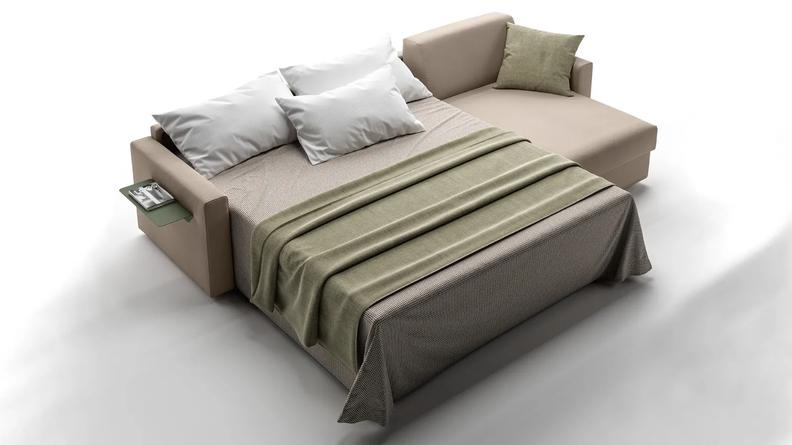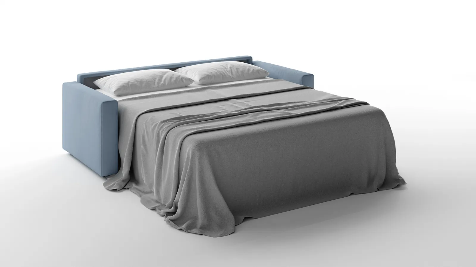 Per trasformare Tabor in un comodo letto, non serve togliere i cuscini dello schienale e della seduta, perché all’apertura della rete, la cuscinatura seguirà il movimento del meccanismo, rimanendo saldamente ancorata. Nella versione letto, Tabor viene fornito di serie con un materasso in poliuretano alto 17 cm con ben 4 diverse misure di larghezza. E’ possibile chiedere anche il materasso in memory foam sempre alto 17 cm.