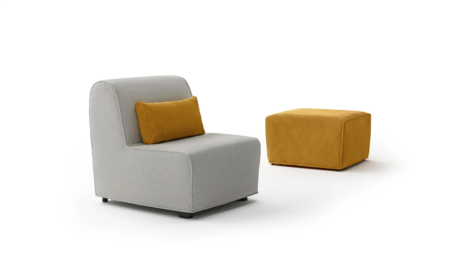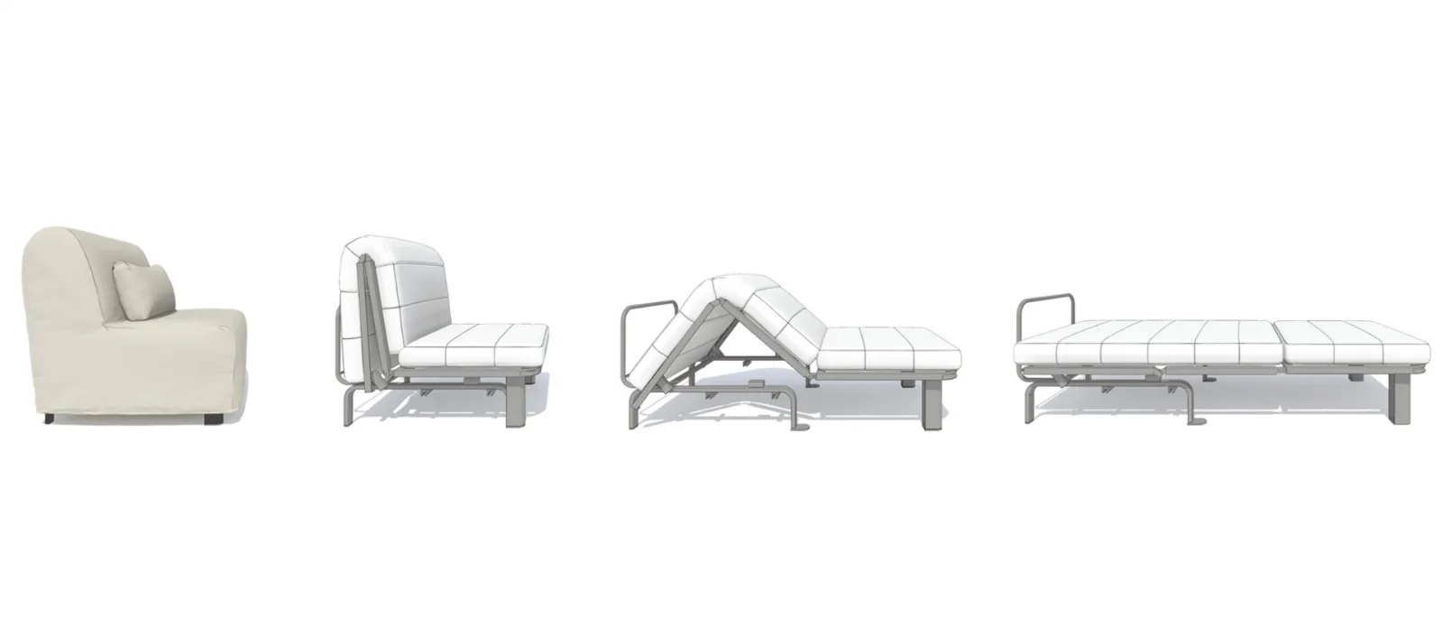 Tea propone una soluzione molto interessante e pratica per creare dei posti letto aggiuntivi per chi ha poco spazio disponibile. La poltrona letto dal design moderno insieme al suo pouf, con poche semplici operazioni diventano dei comodi letti singoli. Il rivestimento sempre sfoderabile si sfila facilmente dalla struttura e troviamo il materasso alto 11 cm per la poltrona e alto 10 cm per il pouf. Le dimensioni di Tea sono molto contenute proprio per occupare poco spazio.
