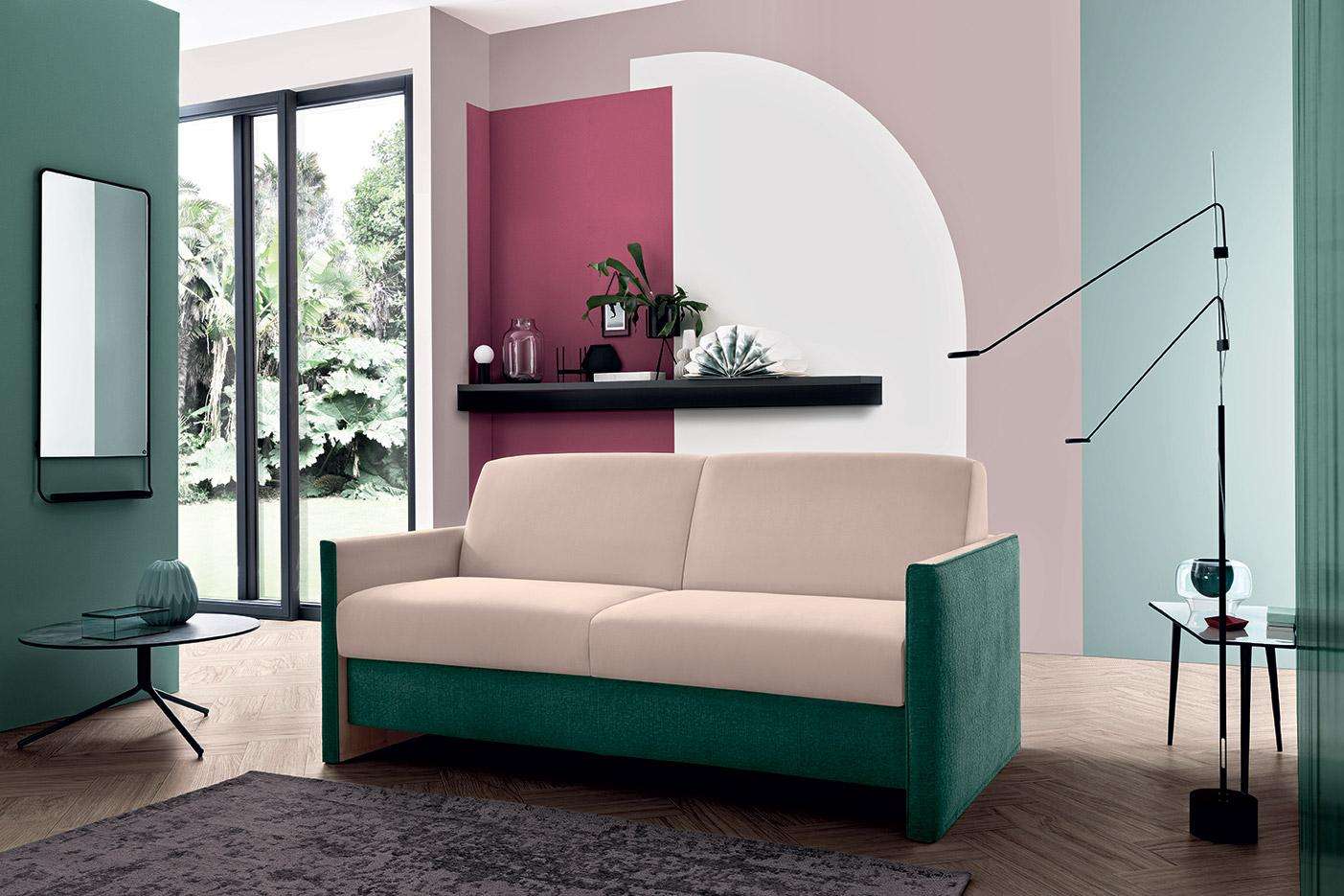 Vegas si impegna a spezzare la noia del tuo living: il confluire di due colori e di materiali diversi rendono questo divano letto una promessa di unicità.