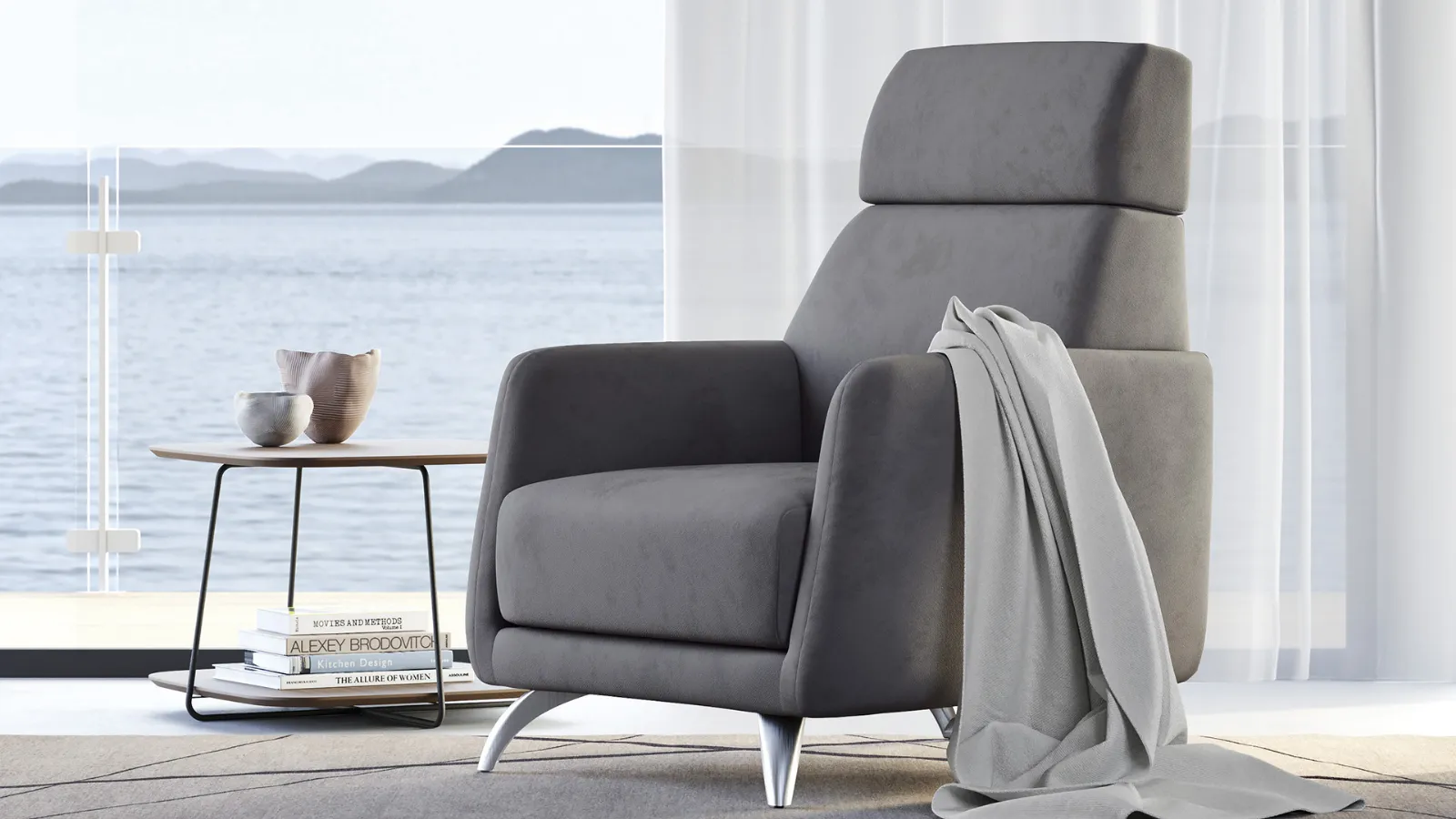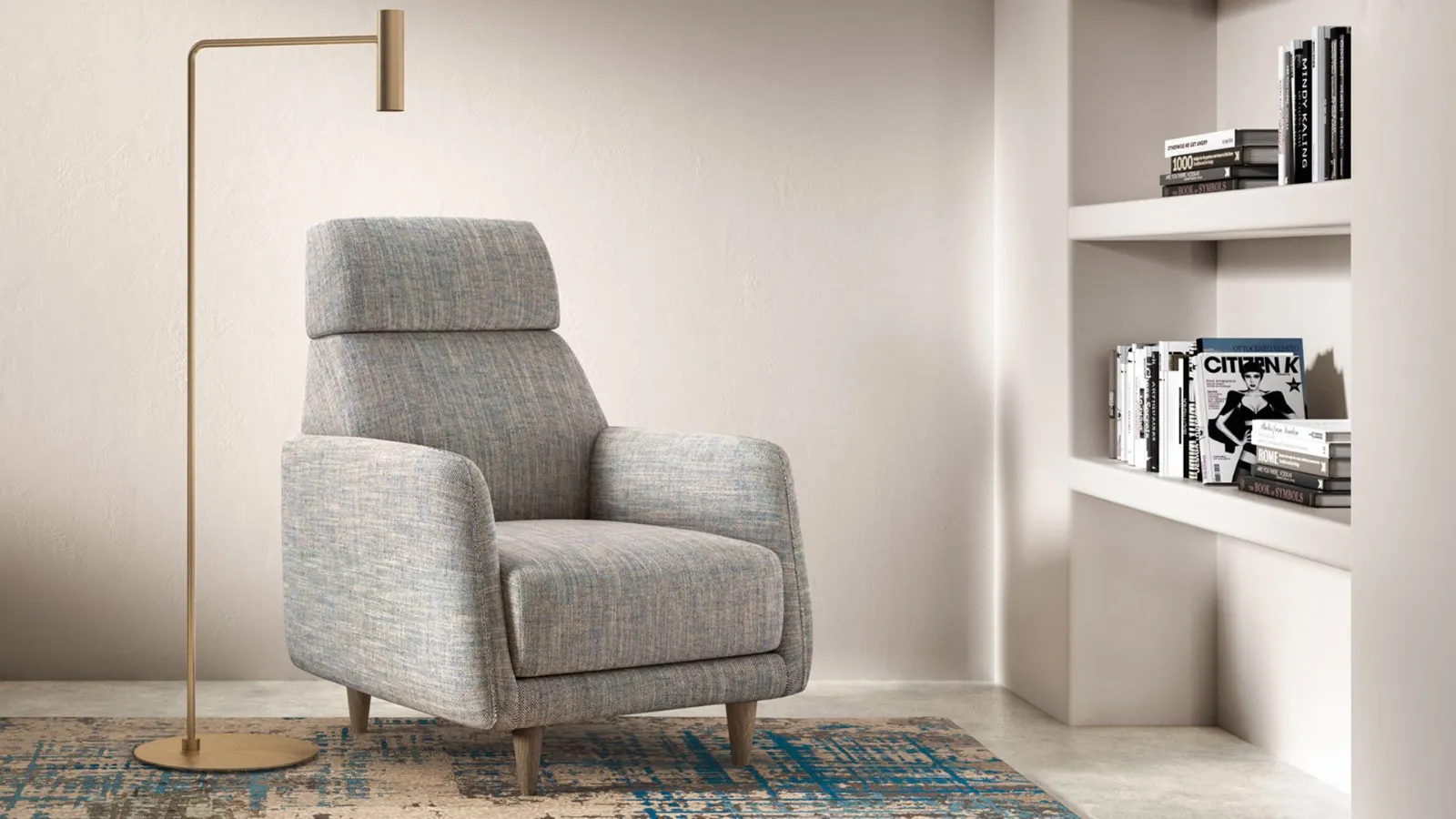 Poltrona dalla linea moderna che si contestualizza facilmente in qualsiasi ambiente. Realizzata con struttura in legno e imbottitura in poliuretano espanso.