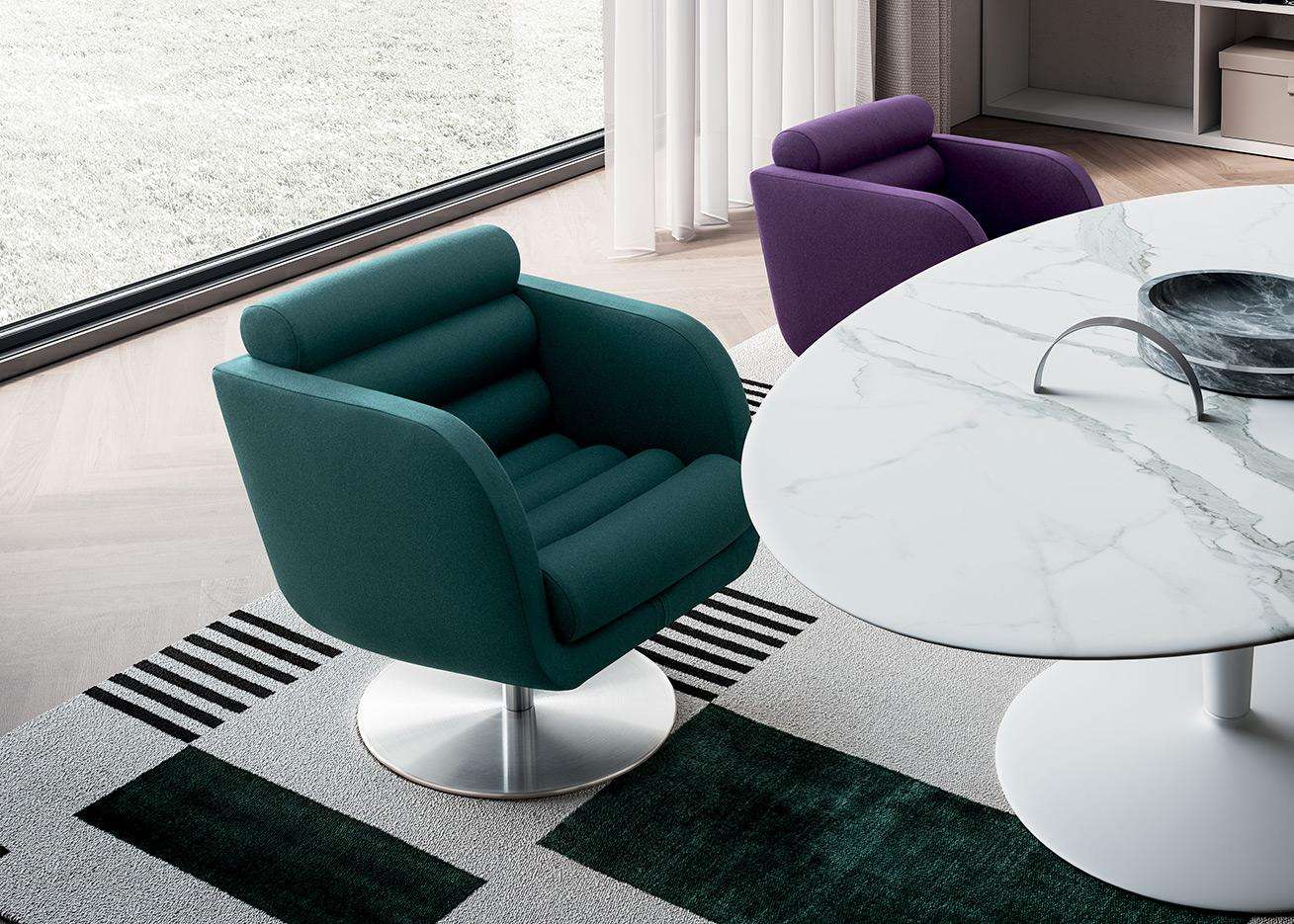 Regina del living come della sala da pranzo, Tubes è disponibile in due diverse altezze. La sua inconfondibile raffinatezza estetica si sposa con un comfort che conquista alla prima seduta e con la praticità di un’ampia gamma di tessuti 100% sfoderabili