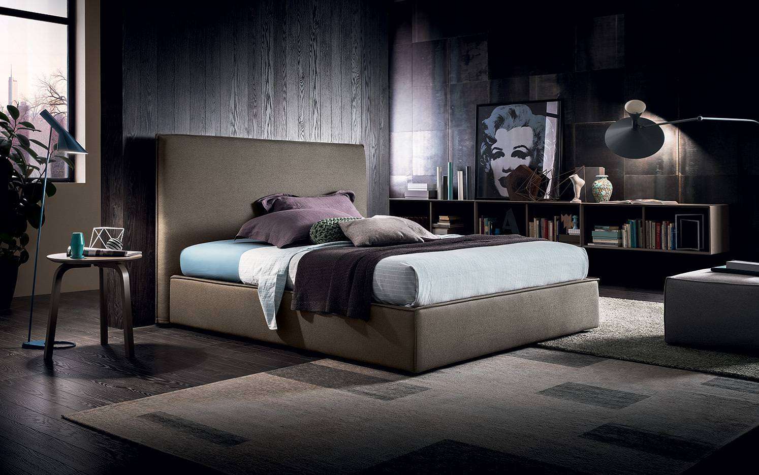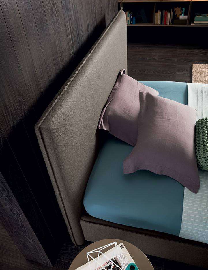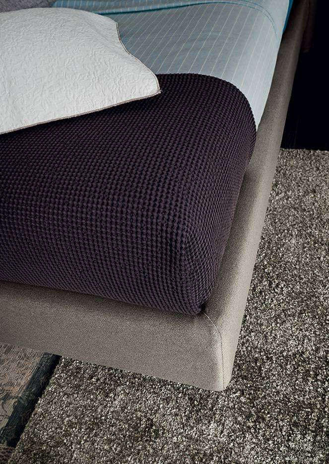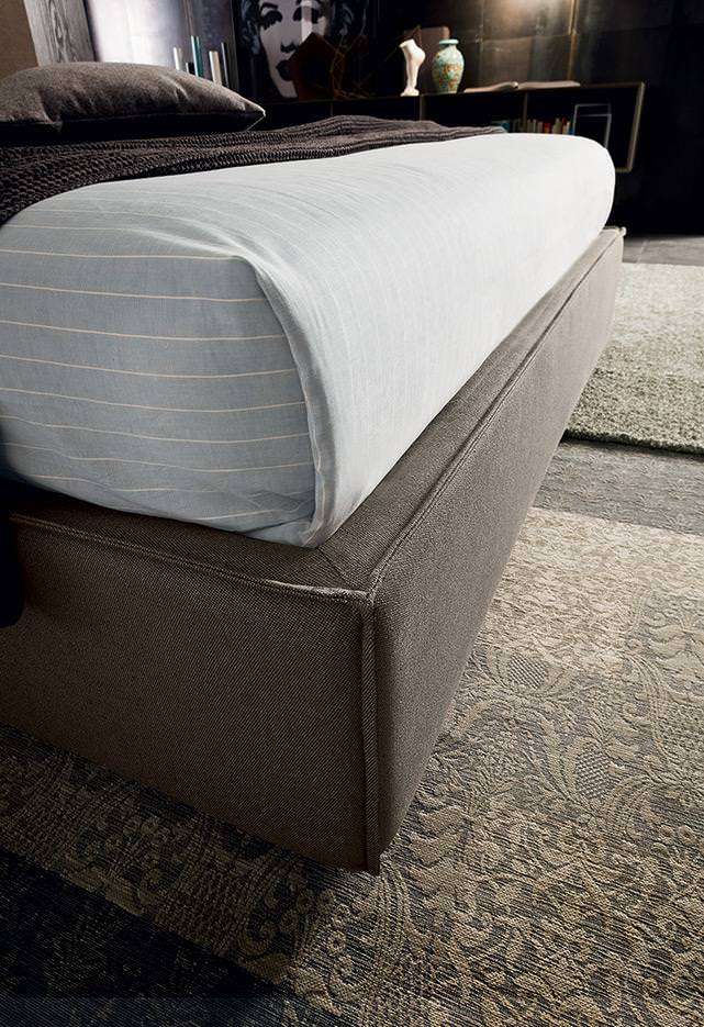 Il ring di Miller con il piedino in plexiglass trasparente, alza da terra il letto, slanciandolo. Il ring a terra, invece, rende una sensazione di pulizia, mentre le cuciture in rilievo a vista tracciano le linee eleganti e accurate del letto