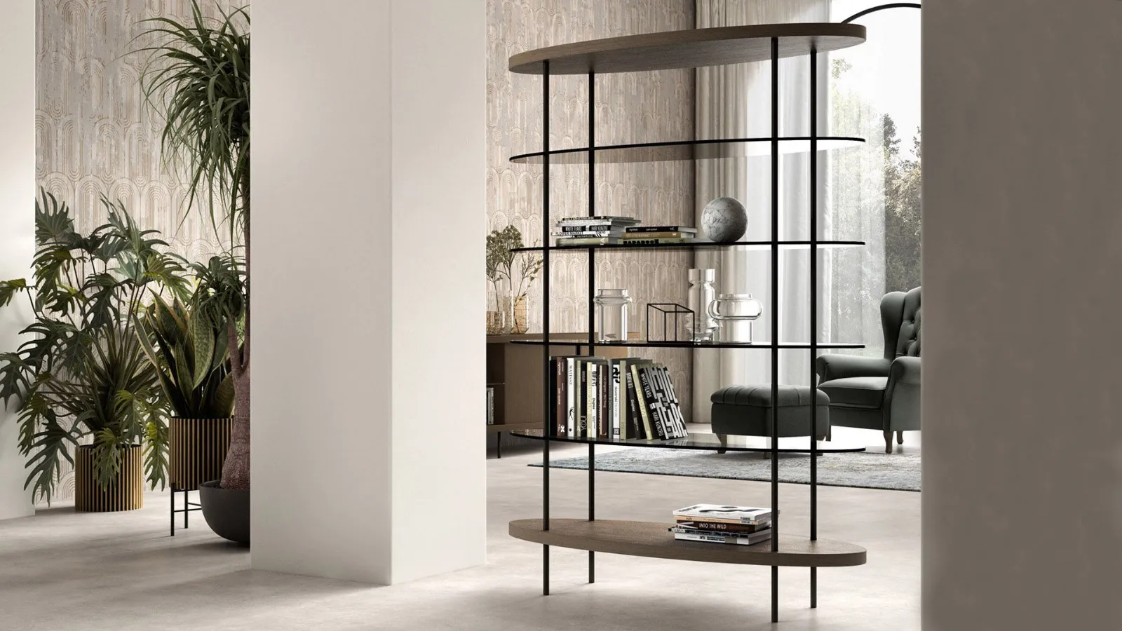 Perfetta anche in centro stanza come divisione tra un ambiente e l’altro. Una libreria adatta a contenere degli oggetti preziosi e da mettere in mostra.