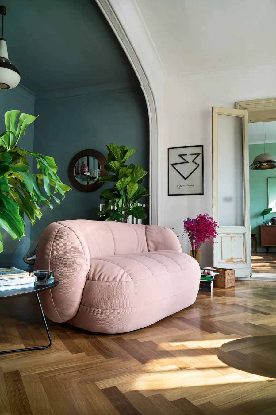 L’imbottitura è composta da poliuretano espanso riciclato derivato dall’agglomerazione di rifiuti ingombranti (divani, materassi) e da scarti di produzione delle filiere dell’arredamento e dell’industria tessile. Il secondo materiale utilizzato per l’imbottitura è l’ovatta in fibra di poliestere termolegata costituita da almeno il 70% da fibra di poliestere ottenuta dal riciclo di contenitori post-consumo di poliestere colore bianco. Ma l’innovazione sta anche a soprattutto nel tessuto con il quale la “Reef” è rivestita. Creato interamente con plastica riciclata post-consumo, dai detriti plastici che galleggiano nei nostri mari e dalle bottiglie in plastica destinate alla discarica, questo particolare rivestimento è stato realizzato insieme a SEAQUAL, la community che combatte l’inquinamento marino ripulendolo dalla plastica. Per ogni “Reef” prodotta, infatti, vengono utilizzate oltre 100 bottiglie di plastica recuperata dal mare, contribuendo concretamente alla missione di pulizia della terra e degli oceani. Il DNA green della poltrona “Reef” continua nella struttura in legno, certificata FSC® (FSC-C002023): Il marchio identifica i prodotti contenenti legno proveniente da foreste gestite in maniera corretta e responsabile secondo rigorosi standard ambientali, sociali ed economici.