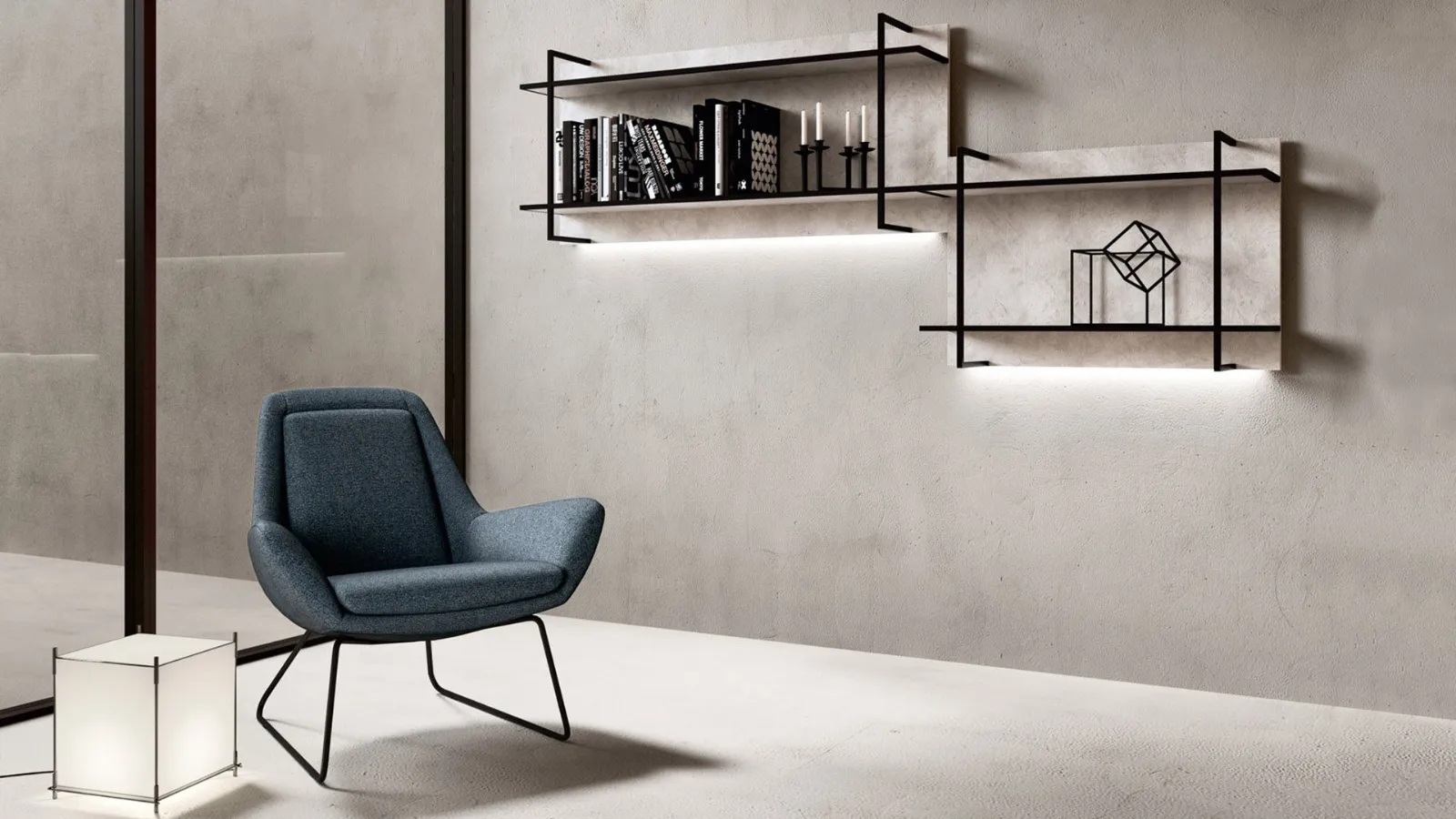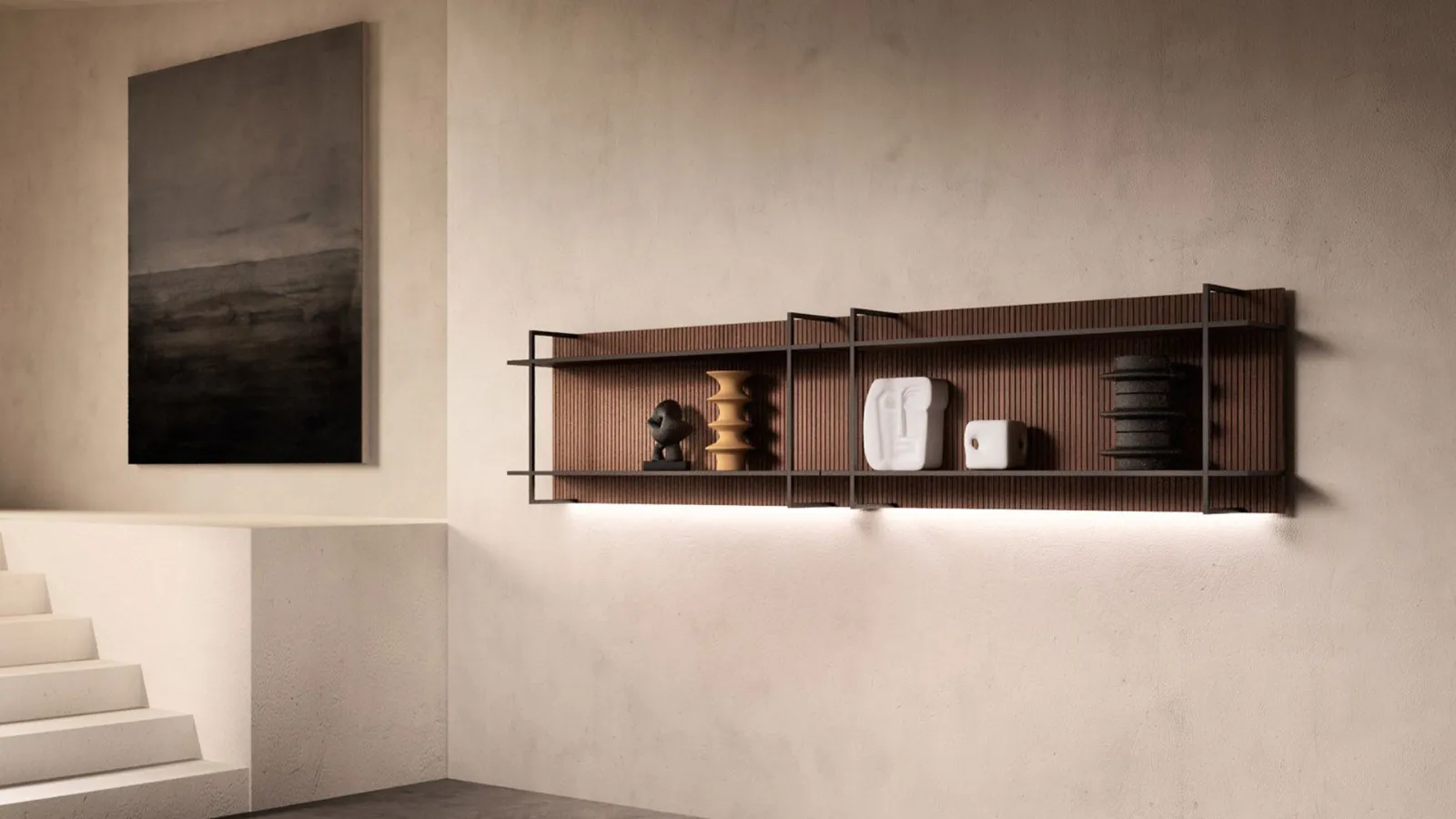 Innovazione e tecnologia si fondono nella libreria Wave, che può essere arricchita con una suggestiva retro illuminazione LED presente lungo il suo bordo inferiore.