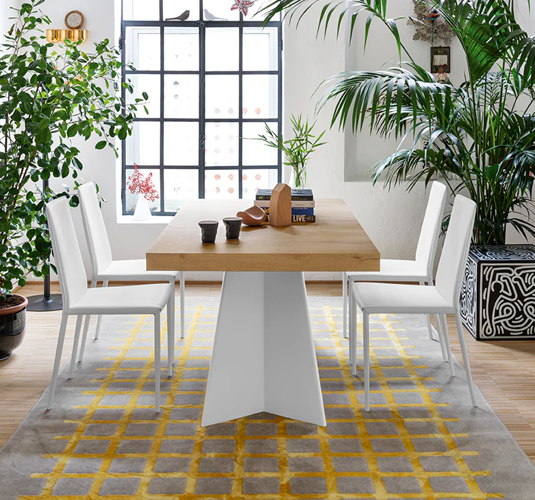 Sedia modello BOHEME, dalla struttura in metallo e sedile/schienale in tinta, rivestiti in cuoio rigenerato.Sedile e schienale sono rivestiti in cuoio rigenerato – un materiale composto da pelle e altre fibre naturali e rifinito come il cuoio – mentre le gambe a sezione conica sono in tubolare di acciaio. La cura progettuale delle linee si denota anche nella coerenza cromatica tra la struttura e la seduta sagomata. Le cucitura a vista impreziosiscono ulteriormente la sedia.La consigliamo per arredare la sala da pranzo, lo studio o il ristorante. Configurala come preferisci.