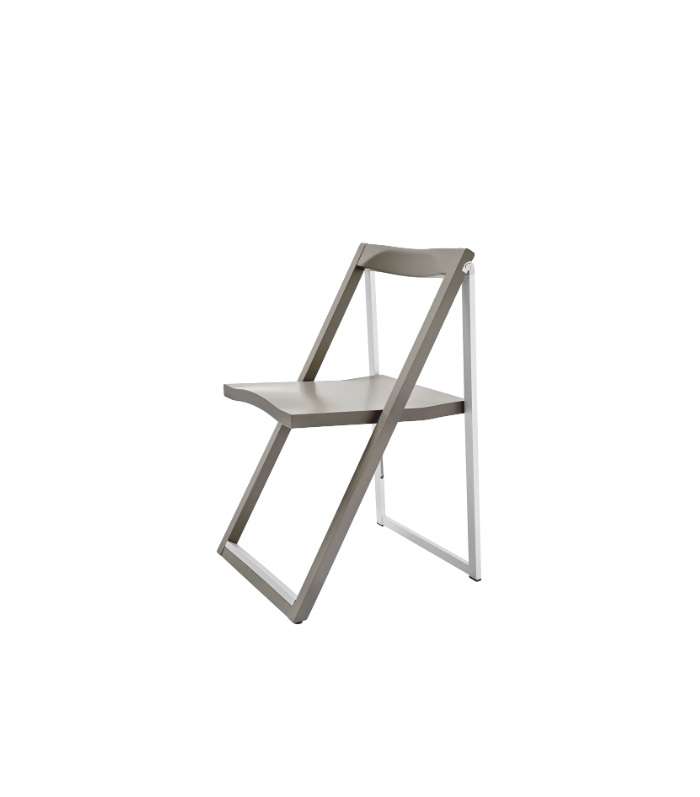 Sedia pieghevole modello SKIP: design minimale, struttura in legno e alluminio, pratica e leggera.Le linee inconfondibili di questa sedia nascono dall’unione tra la parte anteriore in legno massello di faggio e la parte posteriore in alluminio. Da chiusa occupa pochissimo spazio e può essere comodamente riposta sull’apposito gancio a muro FLAT.Versatile, adatta alla cucina e agli spazi ridotti, è perfetta per accomodare velocemente gli ospiti a tavola. Sceglila nella configurazione che preferisci.