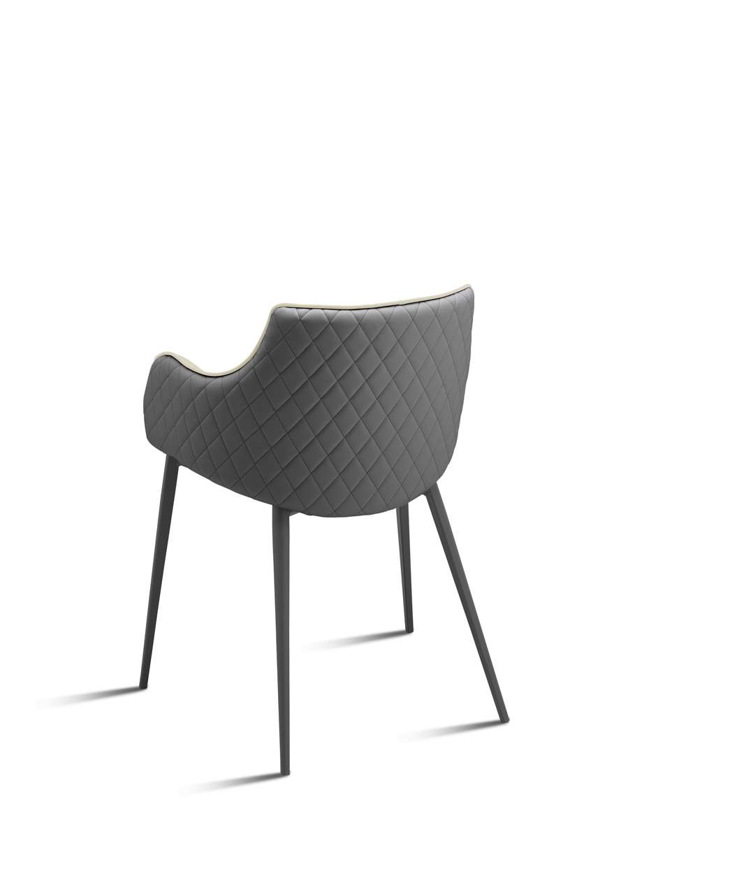 Poltrona con struttura in metallo e seduta in multistrato rivestita in vari materiali e finiture.