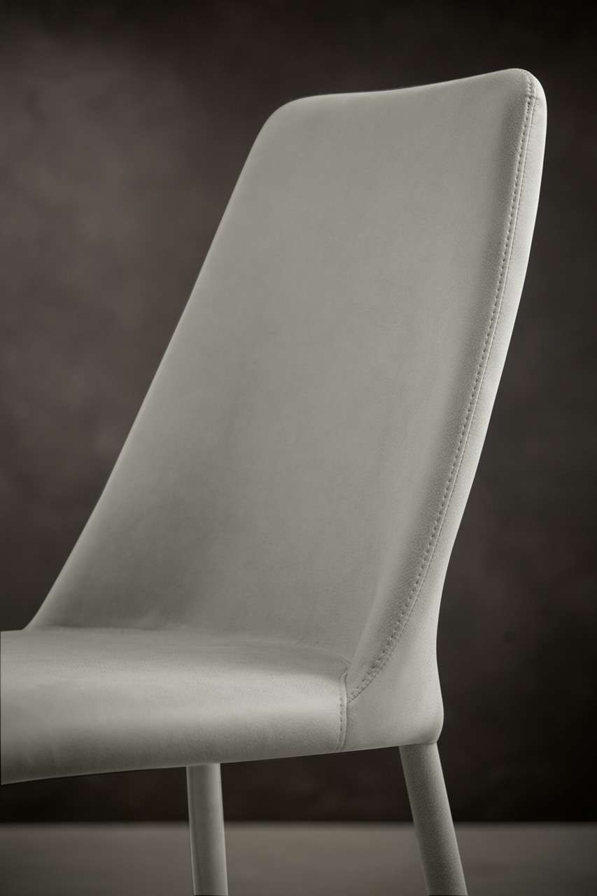 Sedia con struttura in metallo, completamente rivestita in vari materiali e finiture.