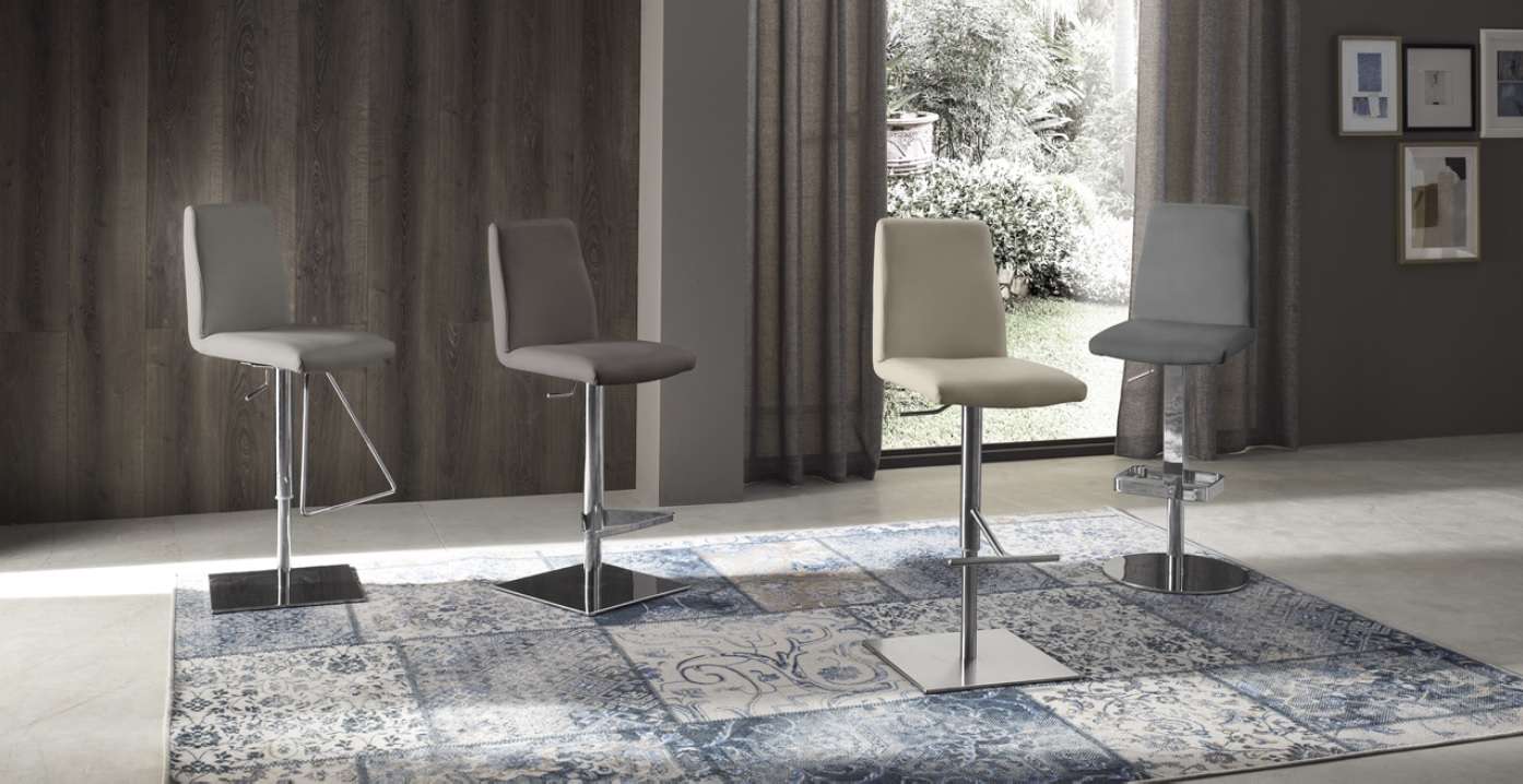Sgabello con vari tipi di basamento in metallo, a gas o fisso.