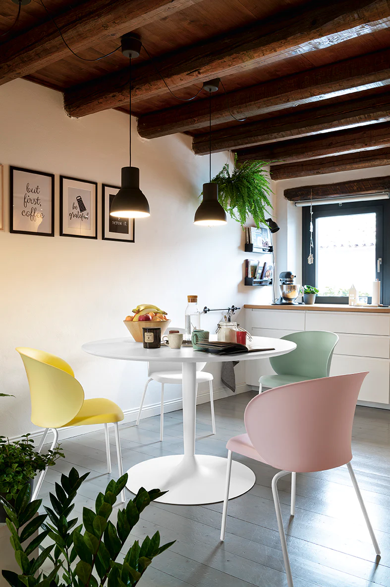 Tavolo modello PLANET con basamento centrale a colonna. Piano rotondo.PLANET è un tavolo con basamento centrale a colonna in metallo. Il piano di forma rotonda è disponibile in vetro temprato oppure in legno. La comodità è garantita per tutti i commensali… anche quando sono in numero dispari!PLANET è il tavolo moderno ed elegante perfetto per la cucina e l’ambiente dining.