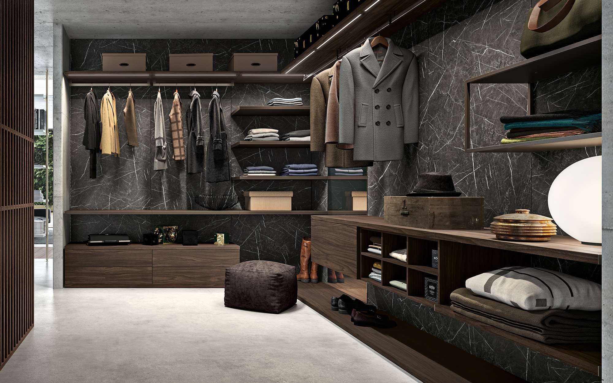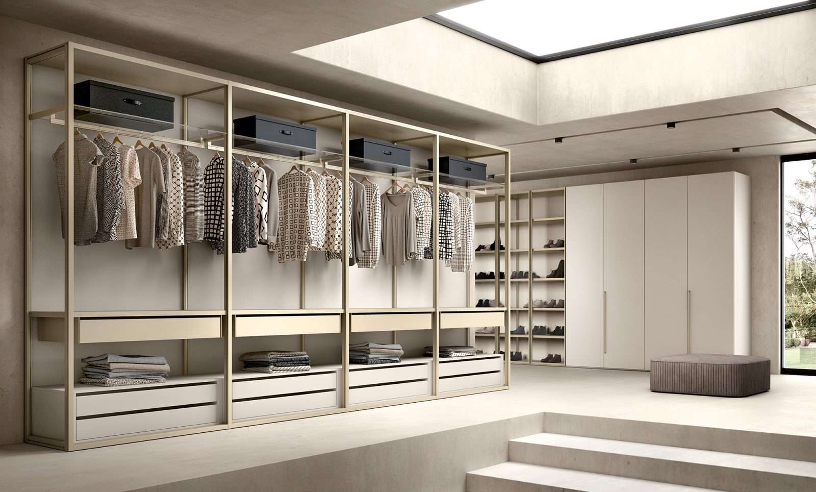 La cabina Kreo ha molti accessori per ogni tipo di esigenza, ripiani vaschette portaoggetti e porta pantaloni, tutti integrabili con le altre collezioni ad esempio