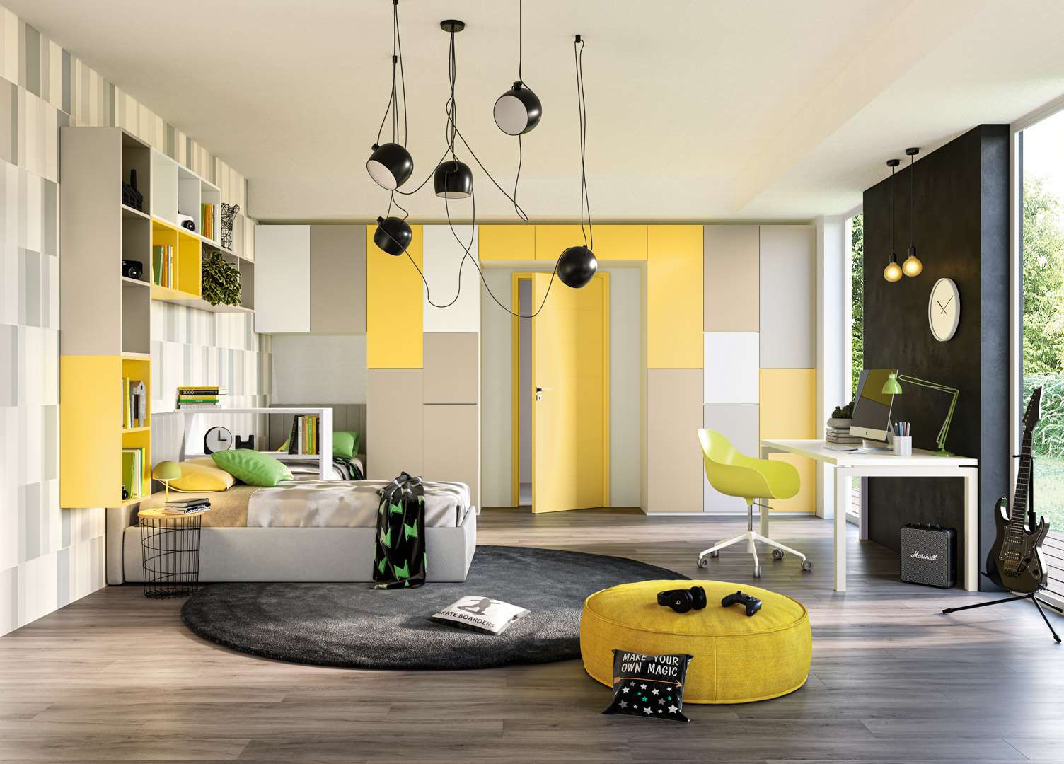 giessegi CM329 CM329 Cameretta per ragazzi dai colori vivaci e dall’animo rock. La libreria appesa è il mobile che sorprende alla vista. Chiedi informazioni »