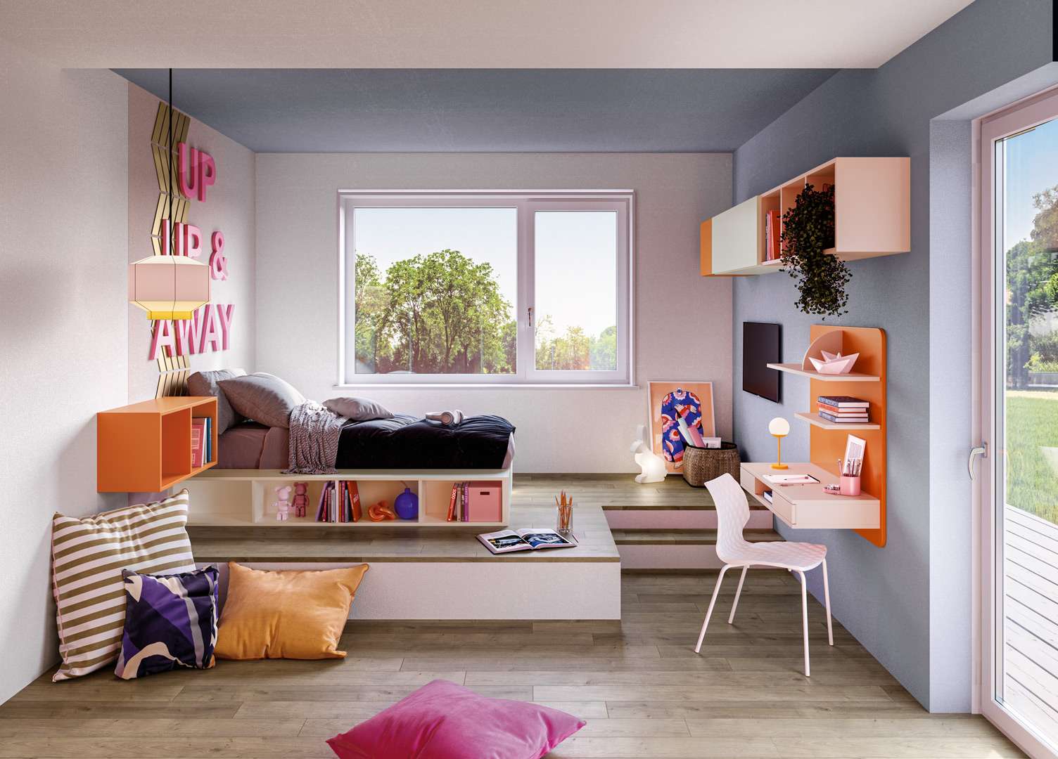 CM311 Uno spazio pensato per le moderne teenager, dove la scrivania sospesa risulta essere la soluzione pratica e dal design accattivante.