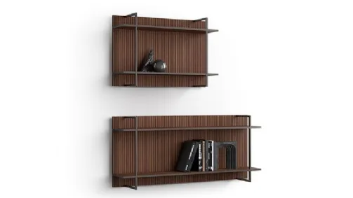 Raffinata ed esclusiva libreria modulare Wave è una raffinata libreria modulare che può essere realizzata in due versioni. Una con il nobile noce canaletto cannettato