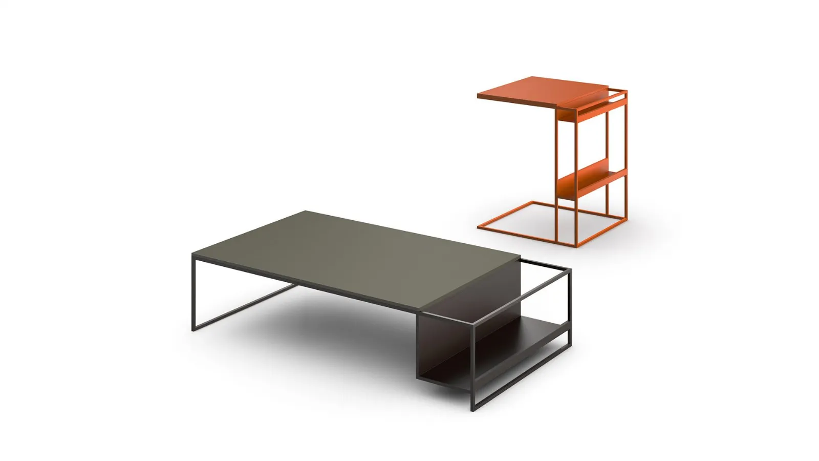Tavolino e servetto con vassoi porta oggettiKen è un innovativo tavolino con vassoio porta oggetti, un complemento d’arredo funzionale e versatile.Disponibile in due misure e