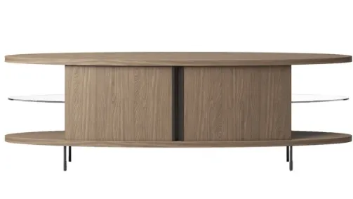 Collezione di madie versatili dalla linea essenziale.Un programma di mobili con la possibilità di essere richieste nella versione con piede o sospesa.La linea pulita ed