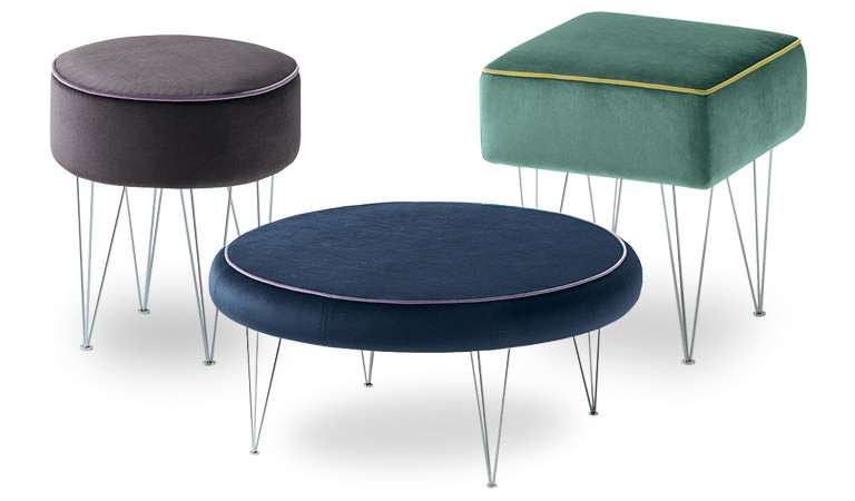 Essenziale, elegante, versatile: Nemesi è il programma di pouf e tavolini di diverse dimensioni ideale per creare, con semplicità, isole di comfort da vivere. La