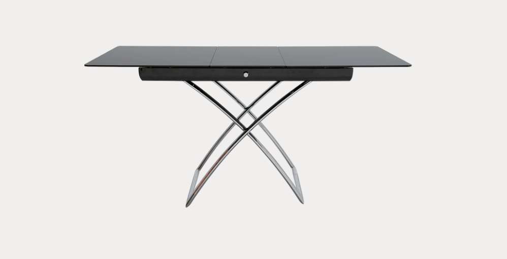 Tavolino modello MAGIC-J glass, struttura in metallo e piano in vetro. Allungabile e regolabile in altezza.MAGIC-J glass è un versatile tavolino per il living che