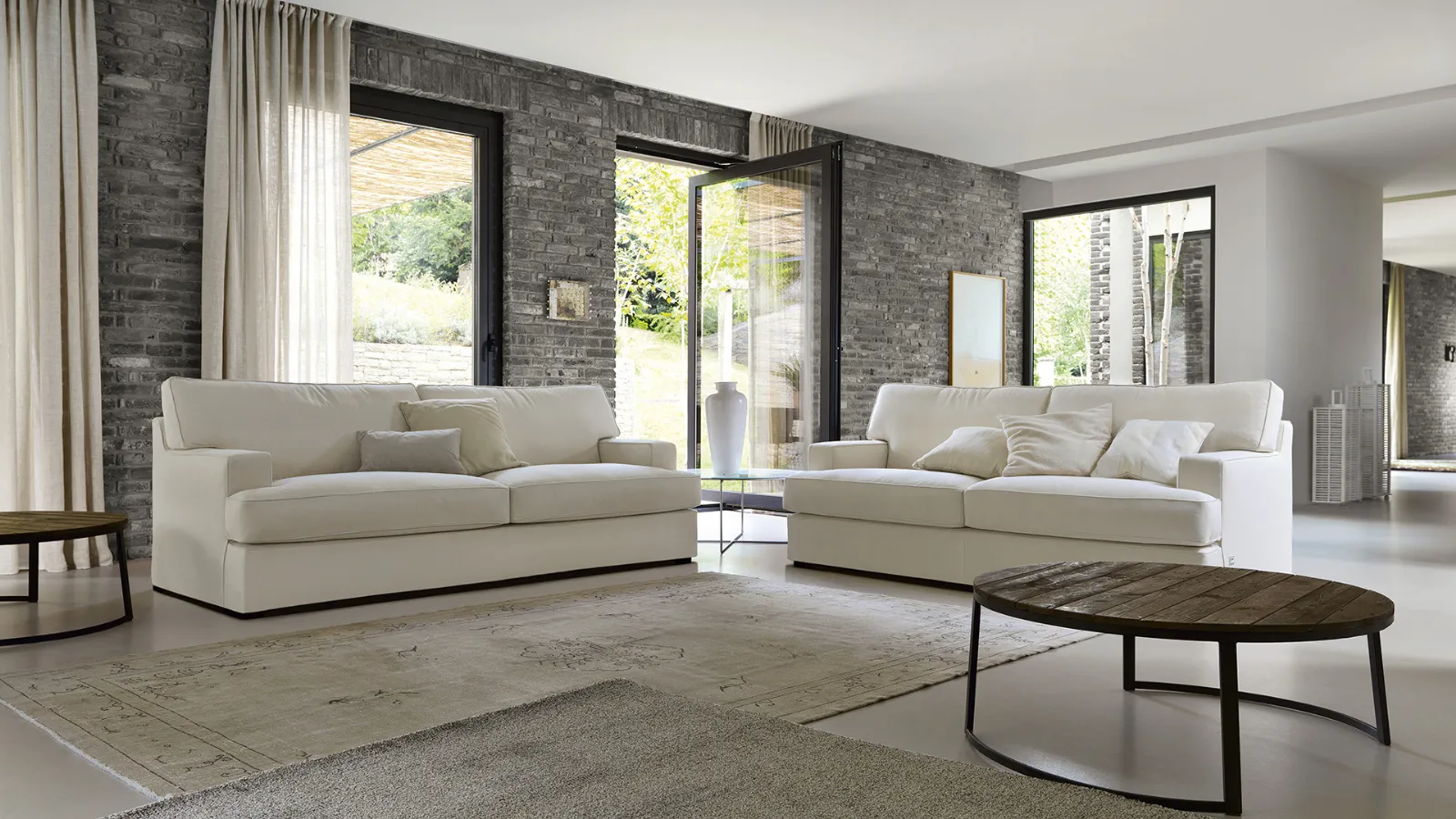 I dettagli vintage che vuoi trovare nei divani contemporaneiTutti i cuscini sono realizzati in poliuretano espanso di densità differenziata e piuma, per avere sostegno ma