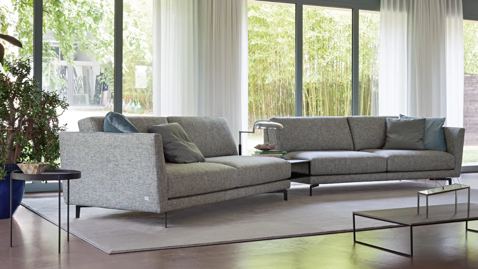 Divano con elementi indipendentiNewton rappresenta una nuova generazione di divani la cui caratteristica principale è la flessibilità di composizione che desidera rispettare le abitudini di