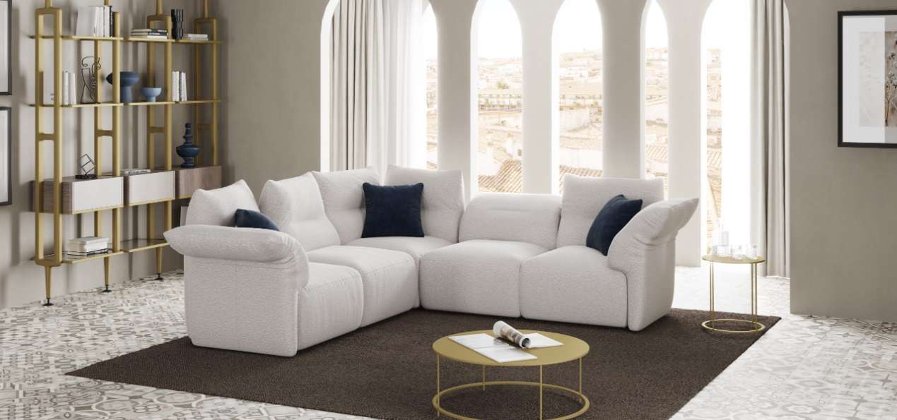 Divano a base aperta, fisso o angolare, caratterizzato da spalliere con meccanismo basculante che permettono di aumentare la profondità della seduta. Meccanismo presente anche nel