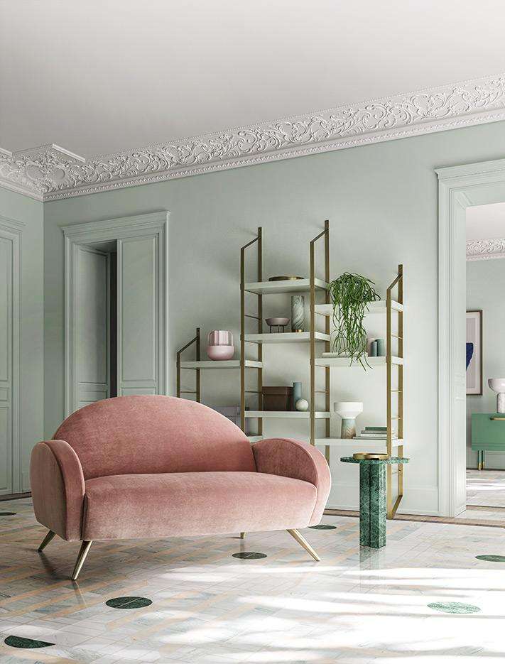 La forma arrotondata dello schienale incontra le linee più squadrate dei braccioli. Clair è il luogo ideale per abbandonarsi al relax, magari immersi in un