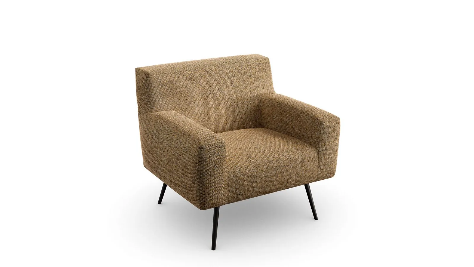 Sintesi perfetta fra garbo e ricercatezza, linee semplici e precise per una seduta compatta e arrotondata, uno schienale curvilineo che si integra ai braccioli e