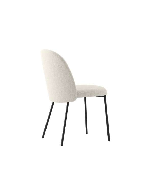 Sedia TUKA con 4 gambe in tubo di metallo. Scocca imbottita e tappezzata fissa con schienale avvolgente e sedile arrotondato.