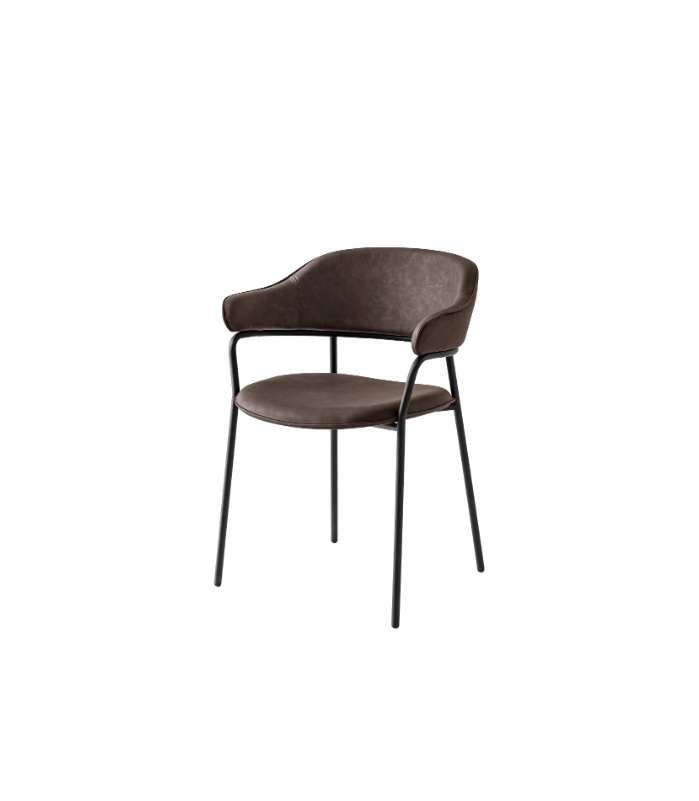Sedia SIBILLA con struttura in metallo e sedile in multistrati rivestiti in cuoio rigenerato con cuciture a vista in tinta. Moderna e funzionale, è perfetta