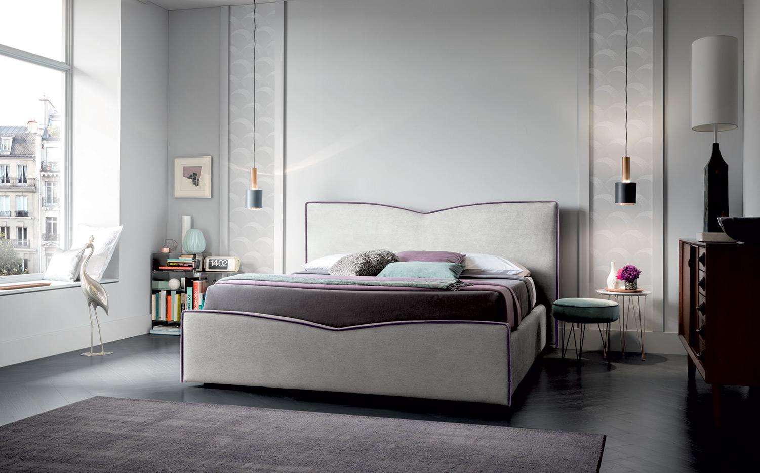 Le linee di Megan sono impreziosite da un bordo a contrasto che sottolinea il design raffinato di questo letto. Il disegno delicato e garbato, con
